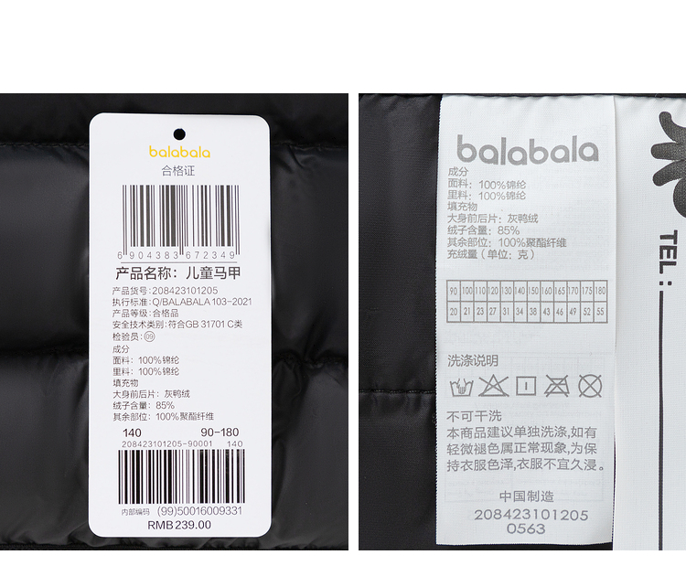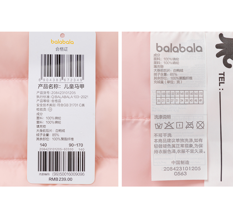 巴拉巴拉儿童马甲男女童羽绒背心秋冬季童装保暖内胆亲子宝宝