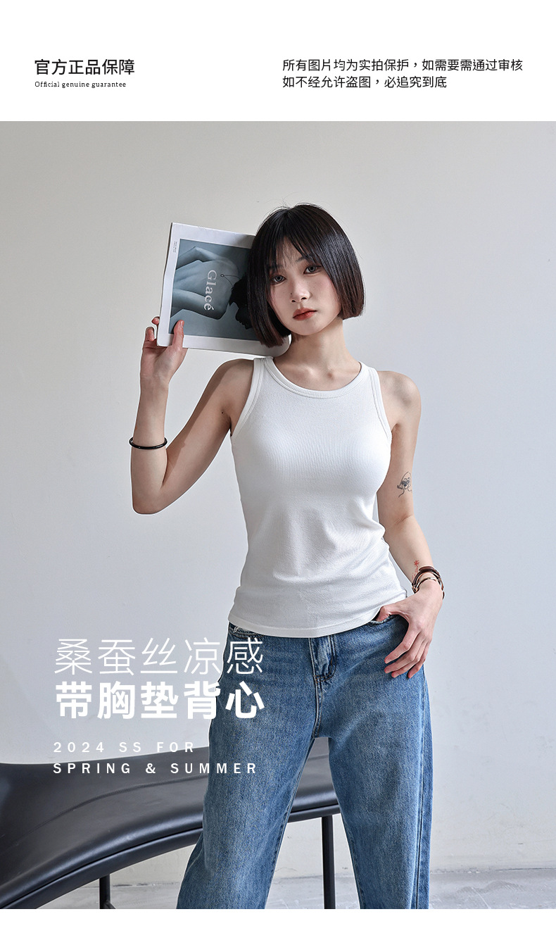 【桑蚕丝凉感垫胸垫背心】工字后备 瞬间凉感 5A抗菌 吸湿排汗H242050558