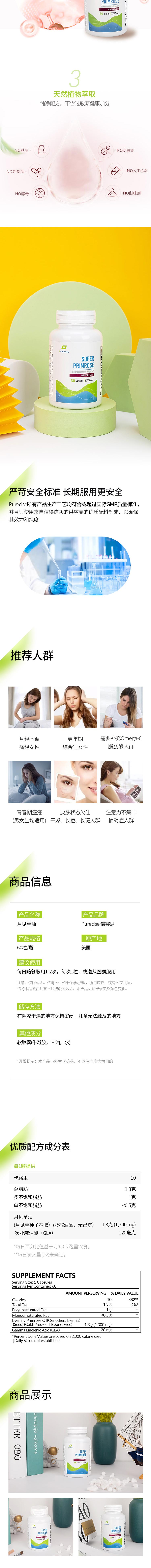 【月见草油精华1300mg】Super Primrose 60粒 富含γ-亚麻酸 GLA 经期不适 青春期男女生 痘痘肌 皮肤粗糙 皮肤紧致度弹性 Purecise倍赛思