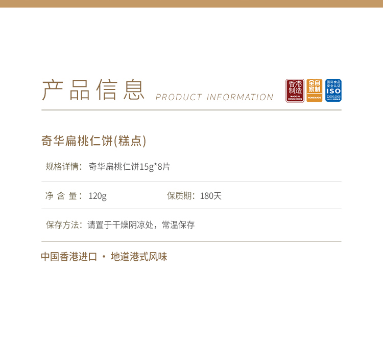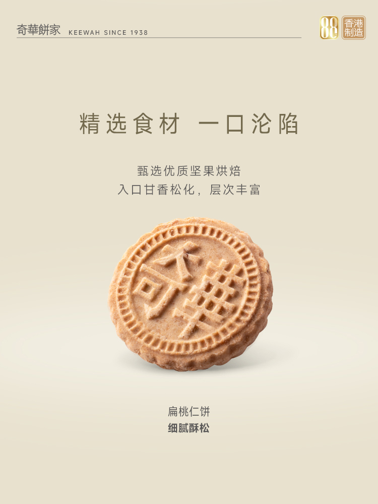 【扁桃仁饼-8片装】奇华饼家 香港进口零食品饼干特产糕点心