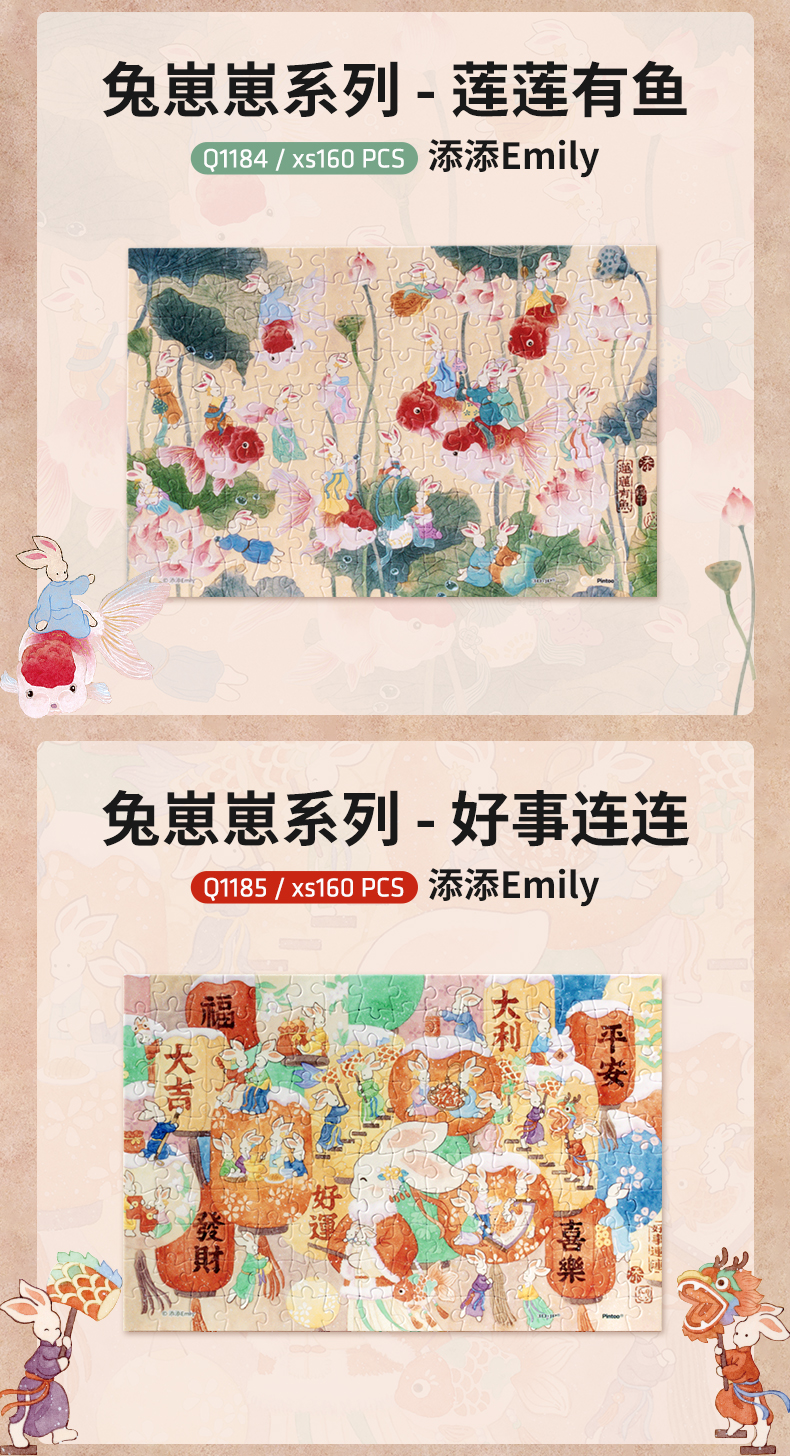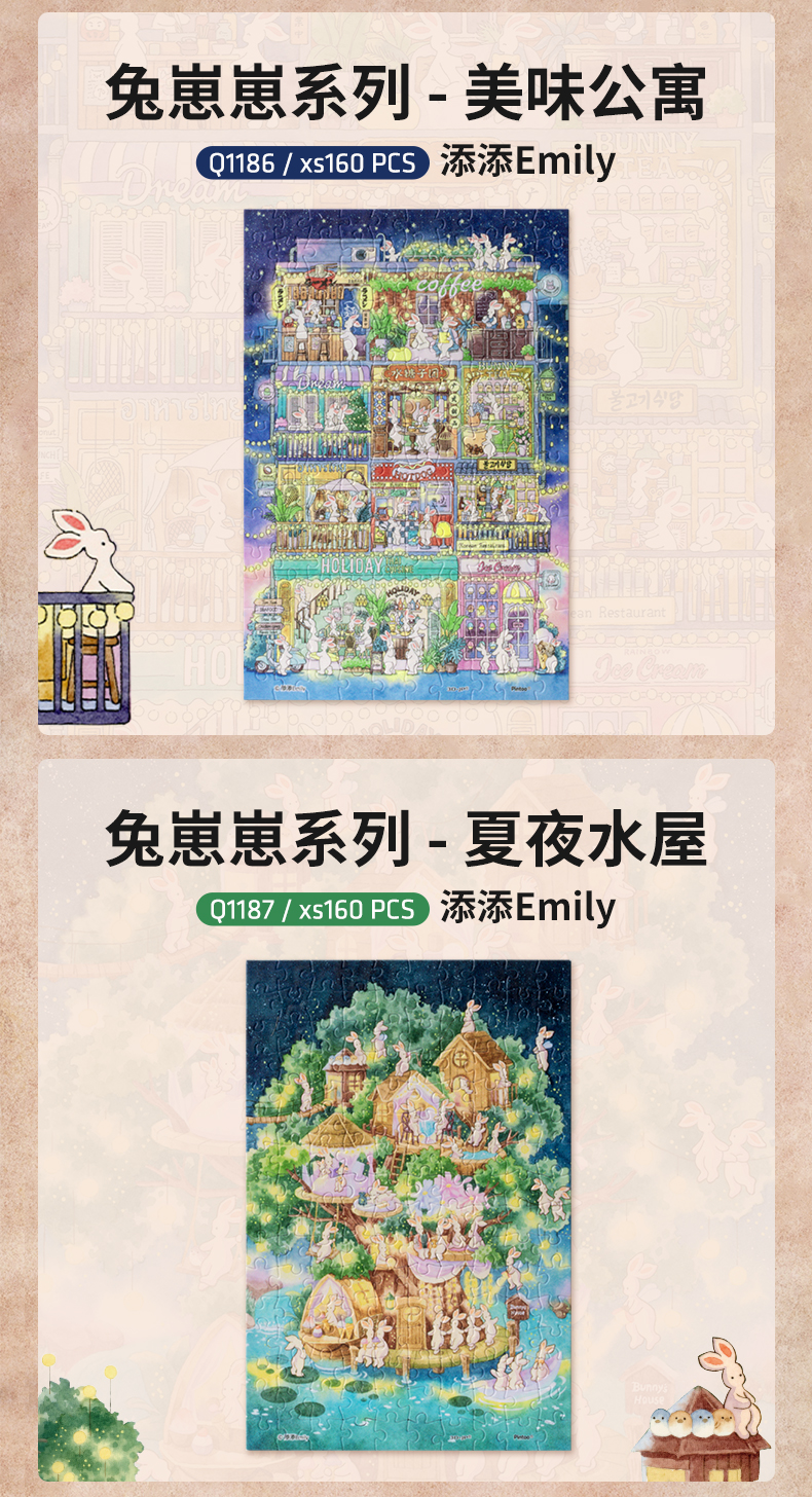 【Q1188折扣商品 不退不换】160片 迷你拼图 添添Emily-兔崽崽系列 Q1126/Q1184/Q1185/Q1186/Q1187/Q1188