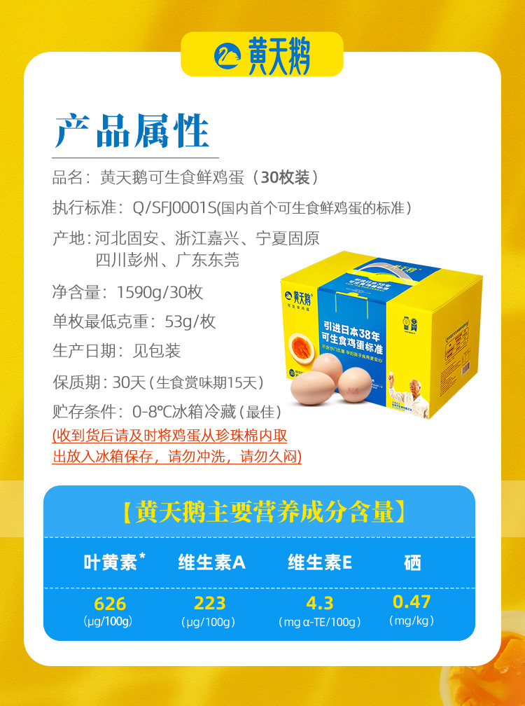 黄天鹅 可生食鸡蛋 30枚鲜鸡蛋 1.59kg/盒