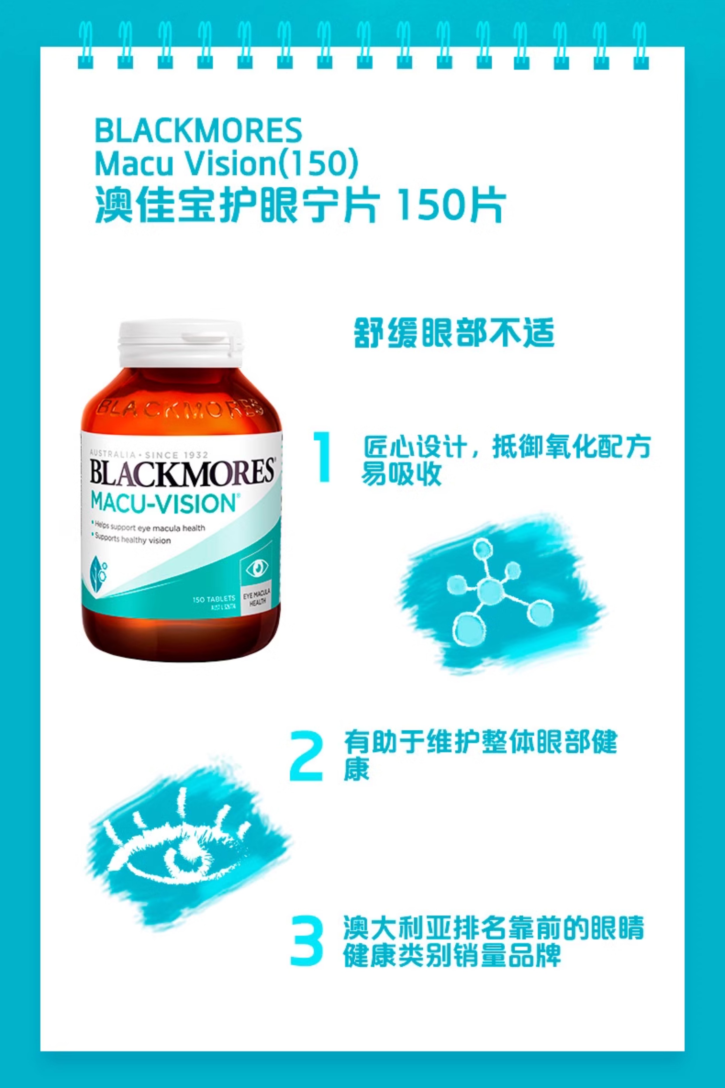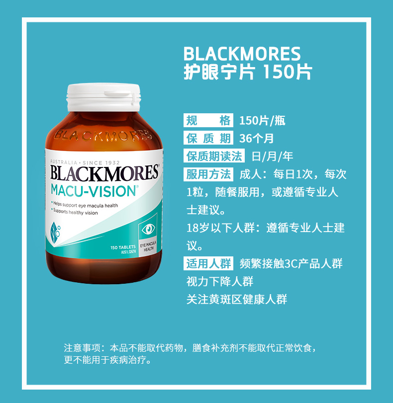 【保税仓】Blackmores澳佳宝护眼宁150片/升级版60粒/蓝莓护眼片加强版30片