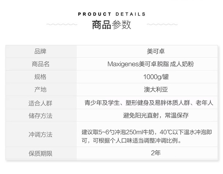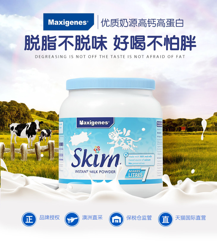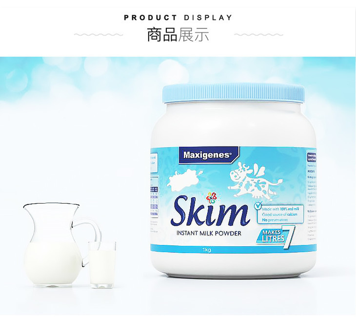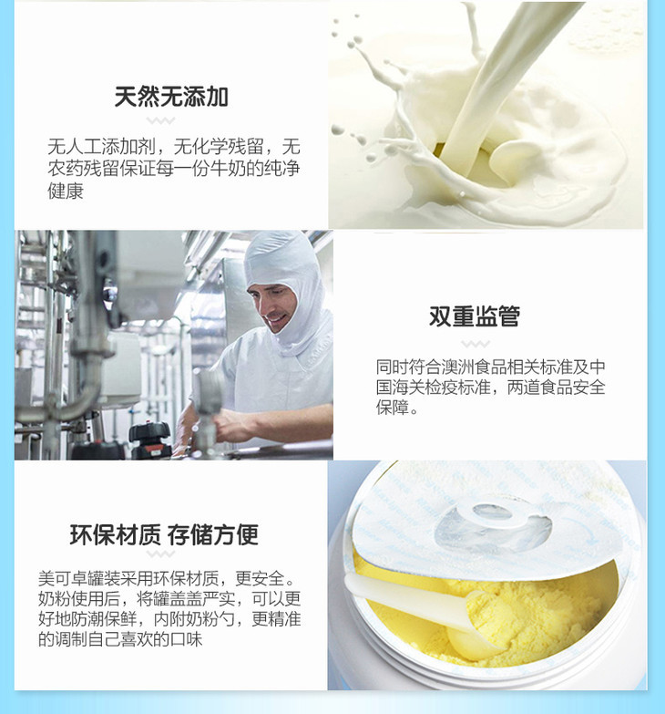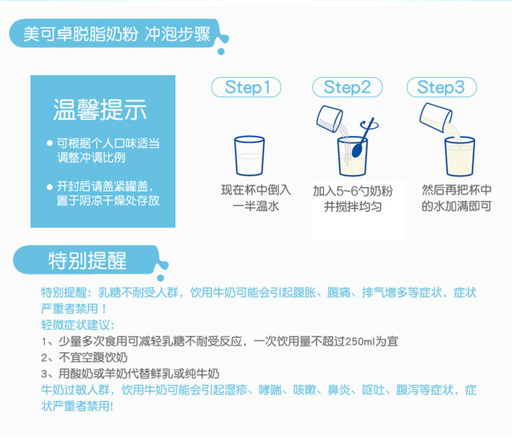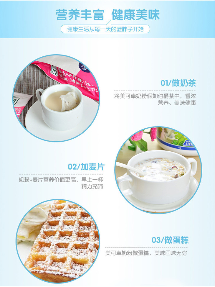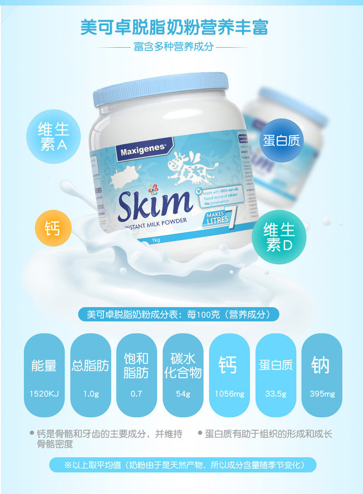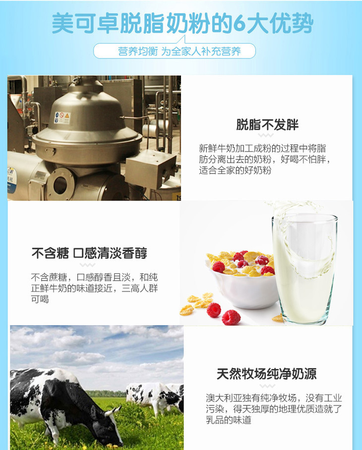 1kg美可卓脱脂牛奶粉 蓝胖子 脱脂更健康 高品质奶源