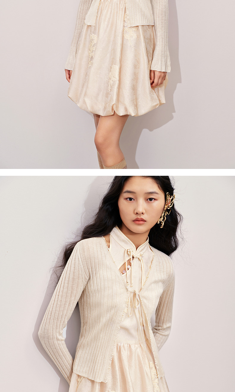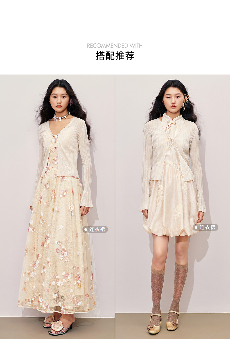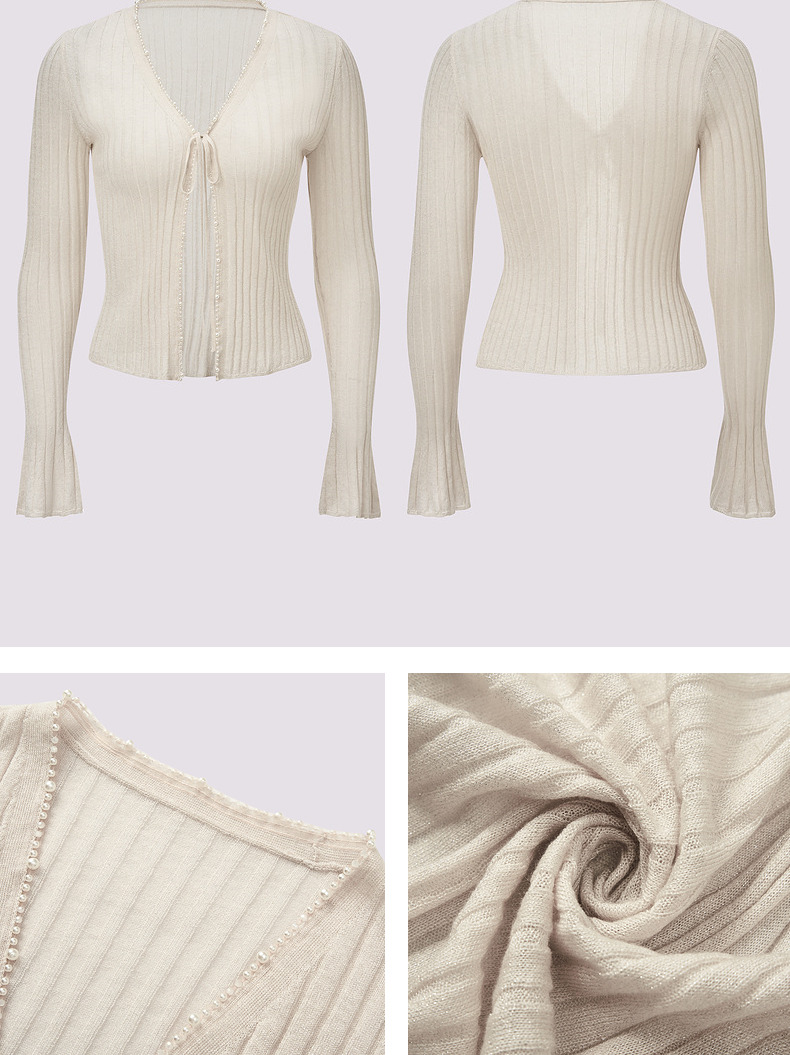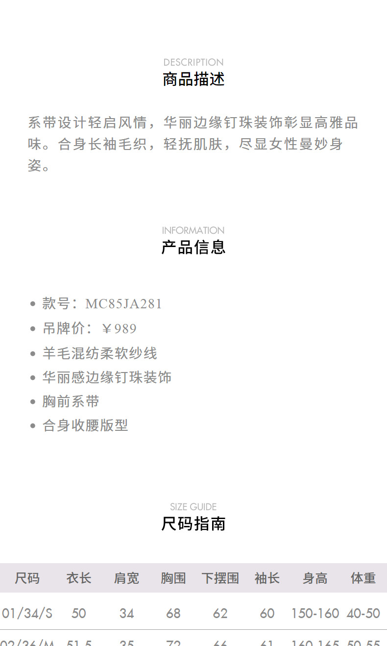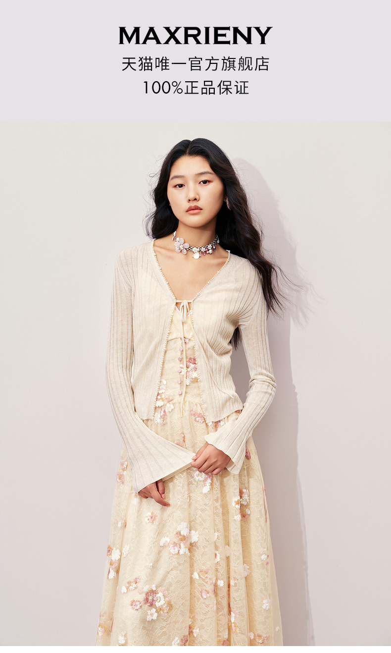 玛克门店发货:MAXRIENY钉珠装饰系带针织开衫外套2024秋冬外搭小衫(货号:MC85JA281)
