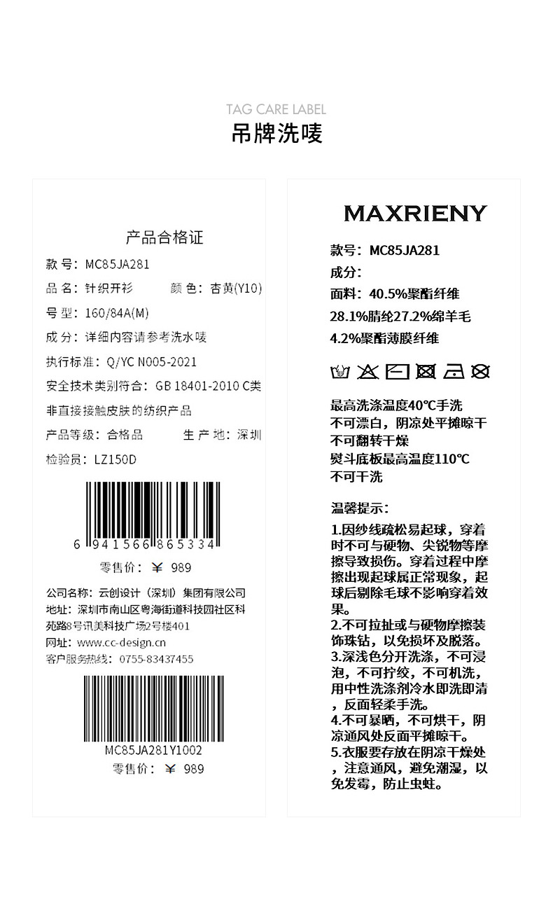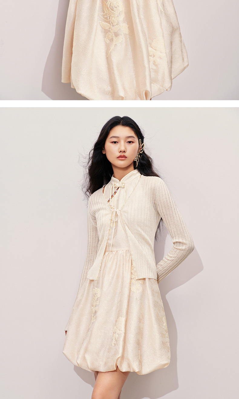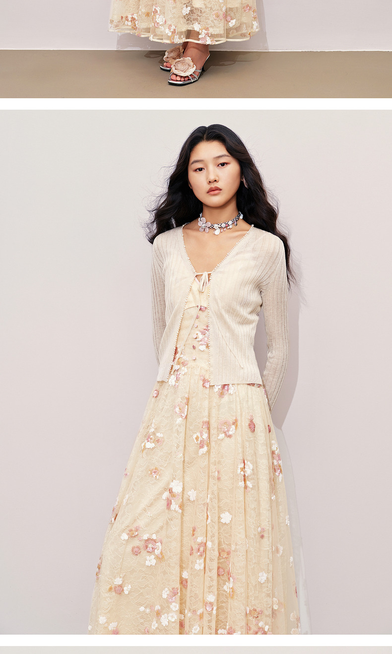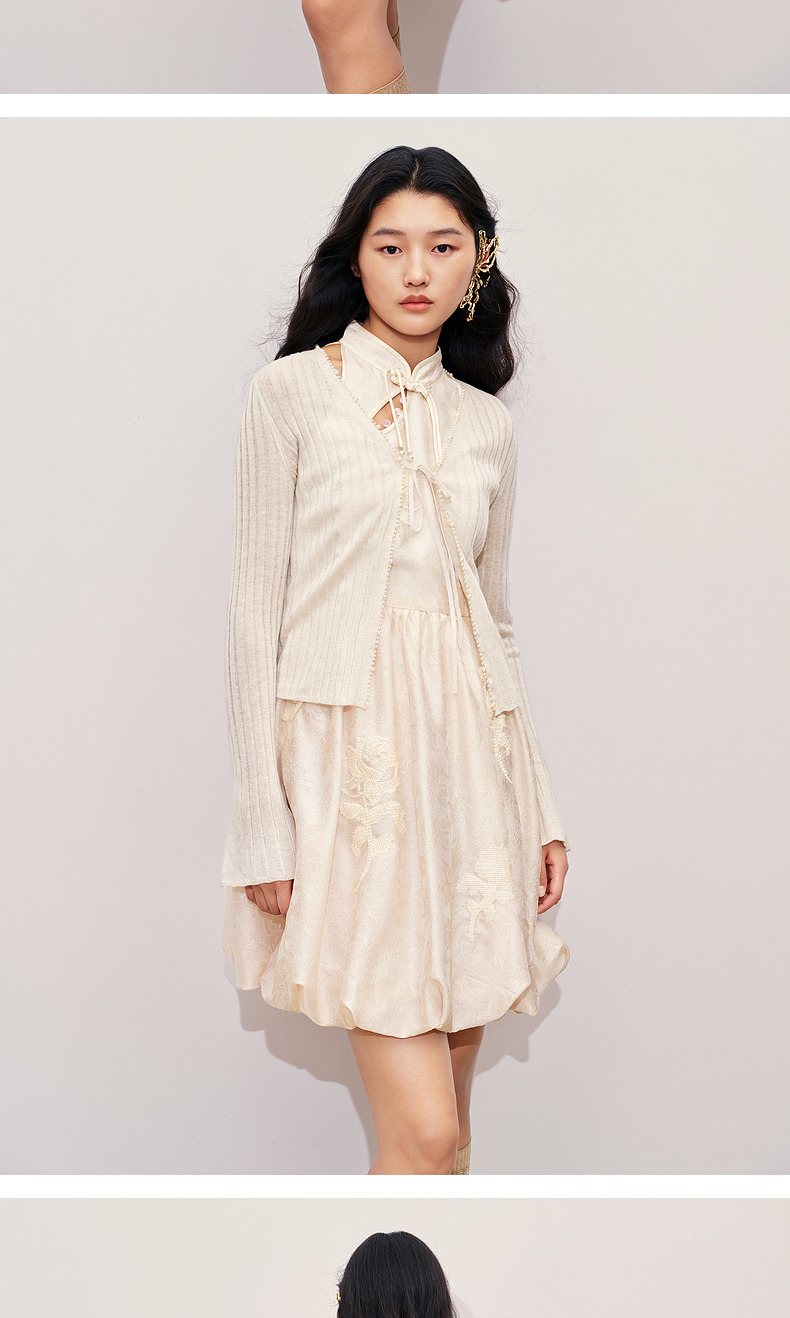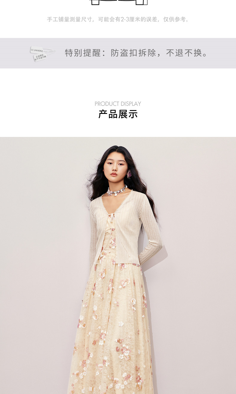 玛克门店发货:MAXRIENY钉珠装饰系带针织开衫外套2024秋冬外搭小衫(货号:MC85JA281)
