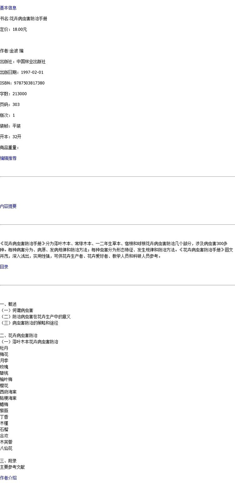 花卉病虫害防治手册1738 金波 中国林业出版社