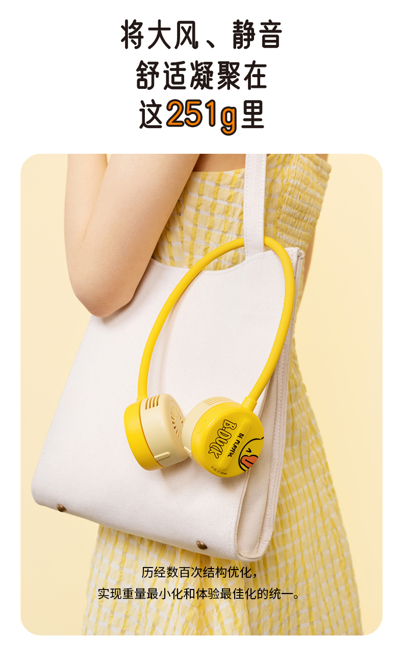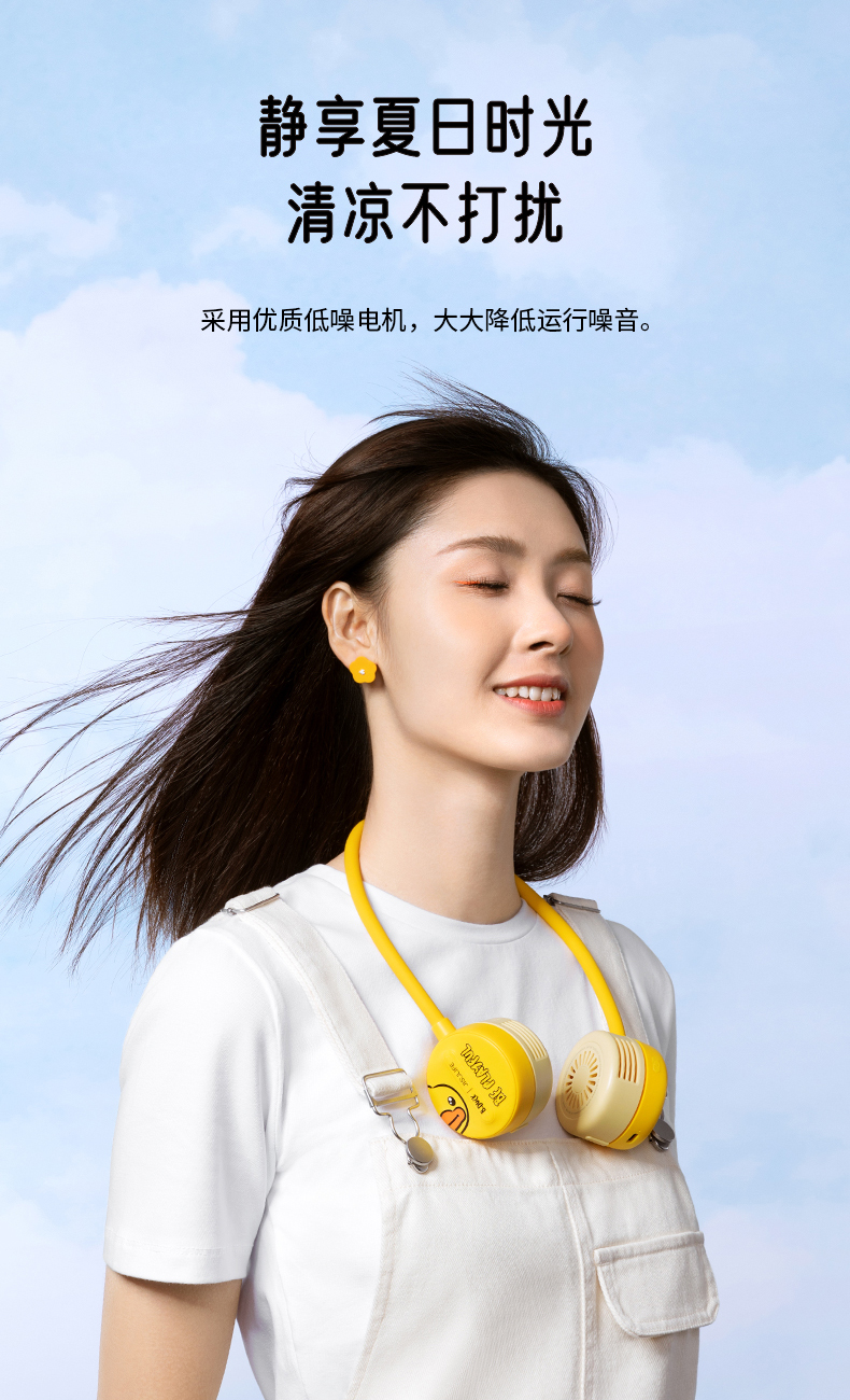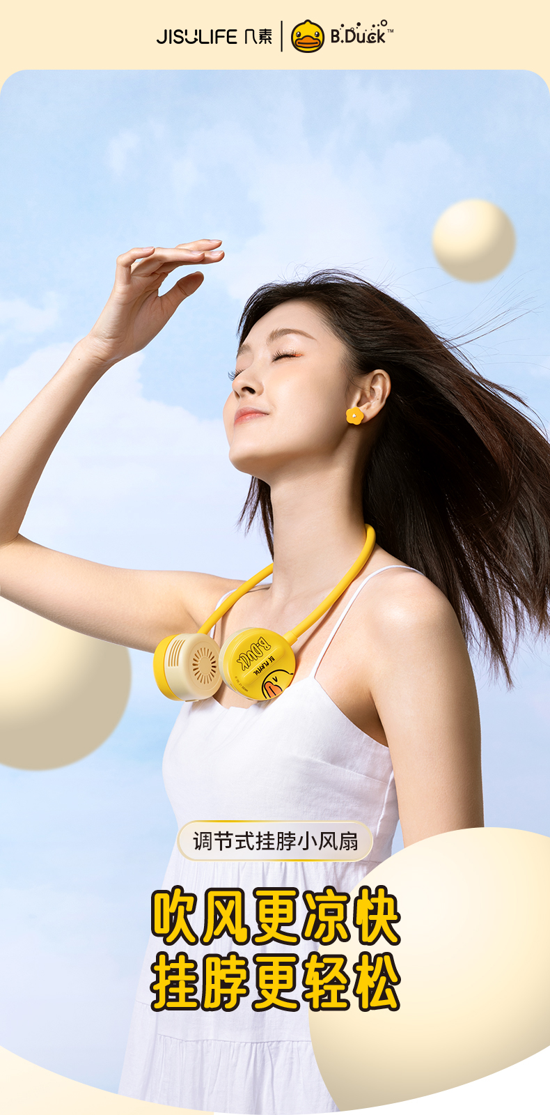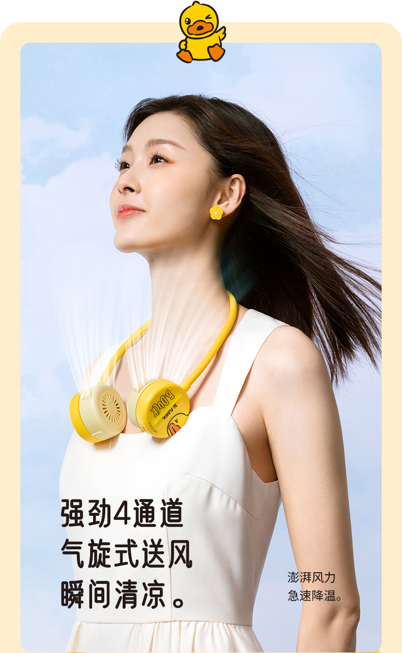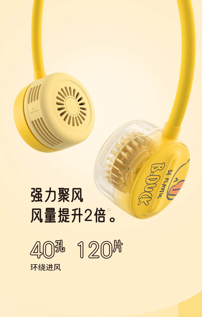 几素 挂脖风扇无叶手持便携式随身挂脖子风扇迷你户外运动颈挂式USB小电扇夏日懒人必备电风扇制冷B-DUCK联名款【四档大风+全方位调节+无感佩戴】