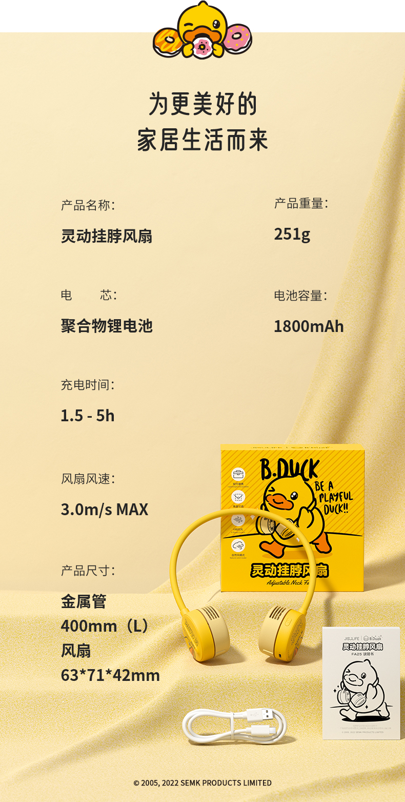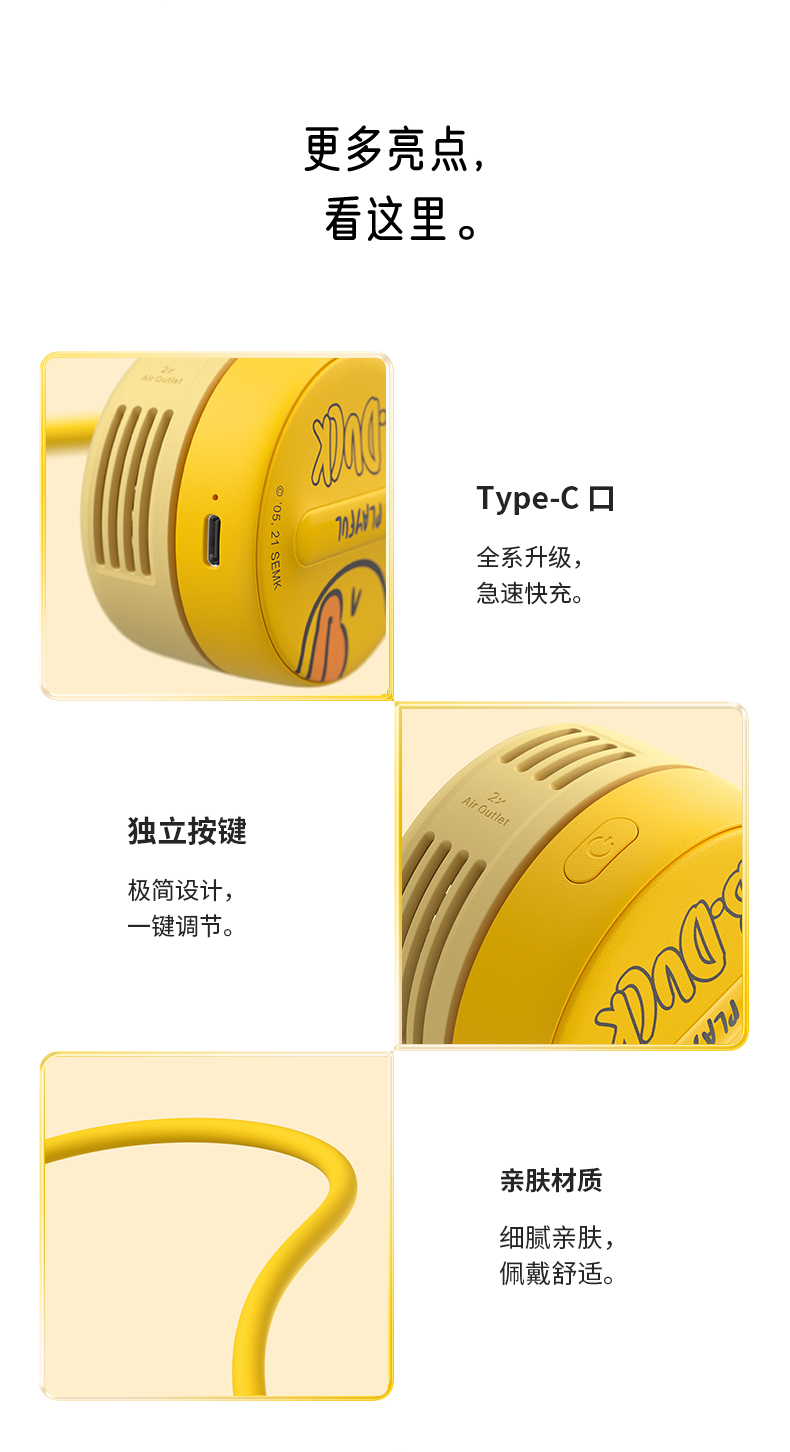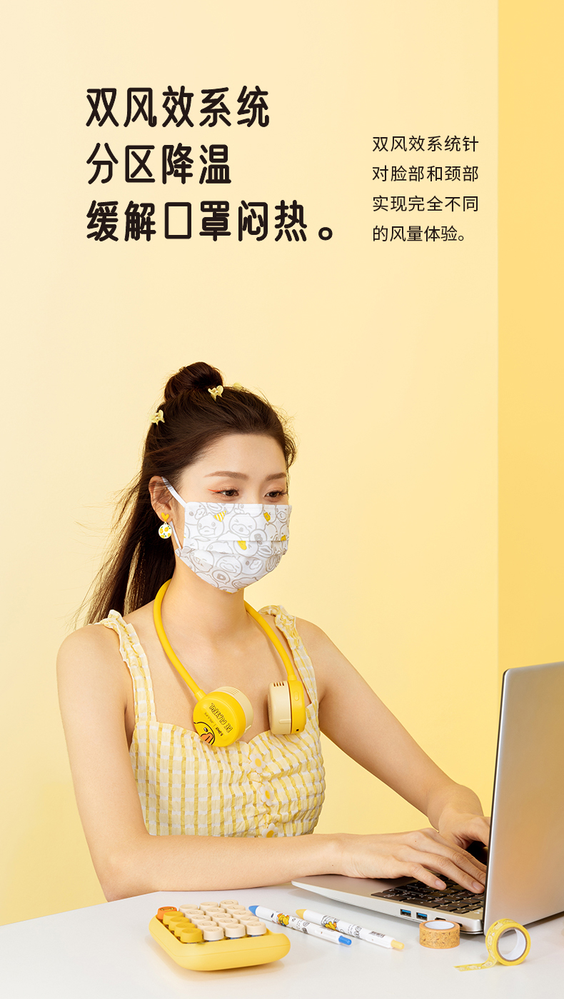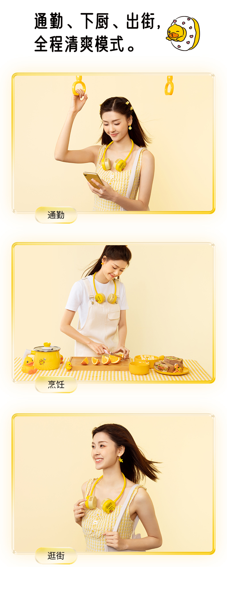 几素 挂脖风扇无叶手持便携式随身挂脖子风扇迷你户外运动颈挂式USB小电扇夏日懒人必备电风扇制冷B-DUCK联名款【四档大风+全方位调节+无感佩戴】