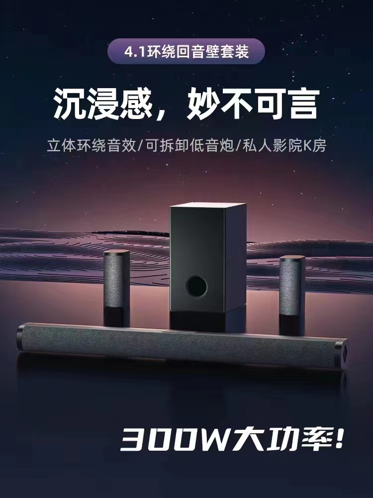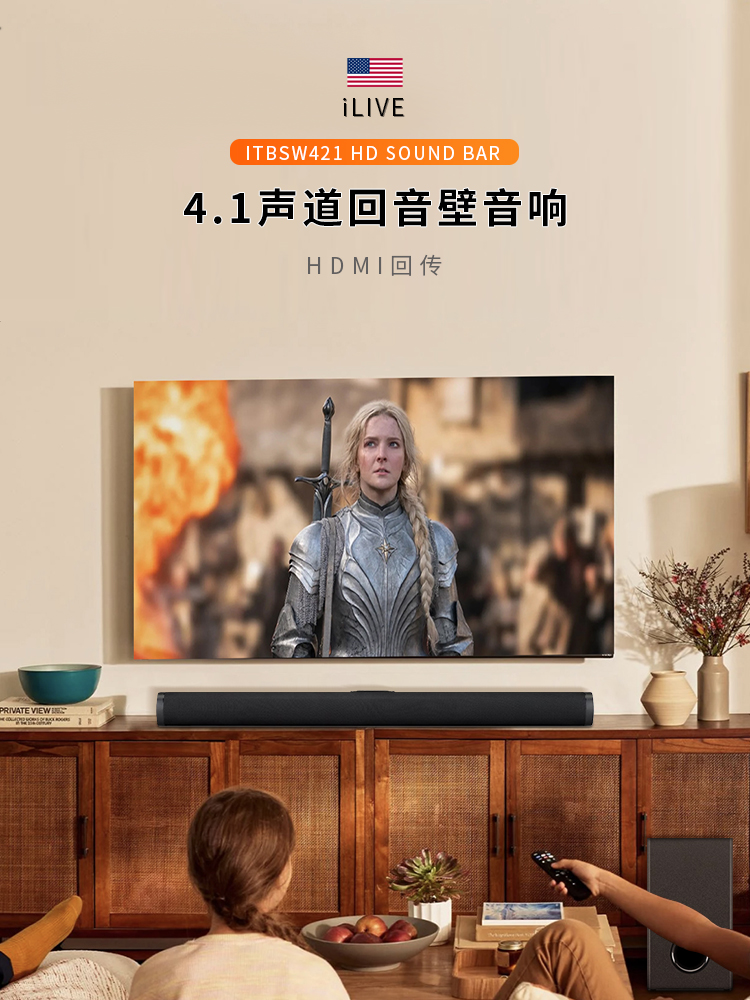 【立省1376元】美国 iLIVE 4.1 声道 分离式无线环绕 无线低音炮 HDMI回传 5.0高清蓝牙 家庭影院回音壁