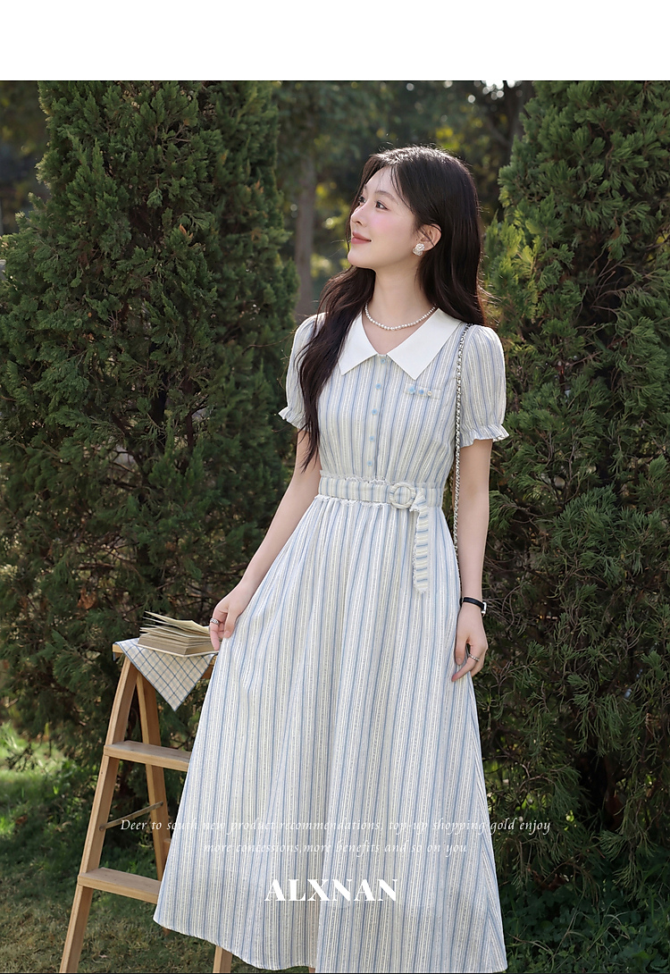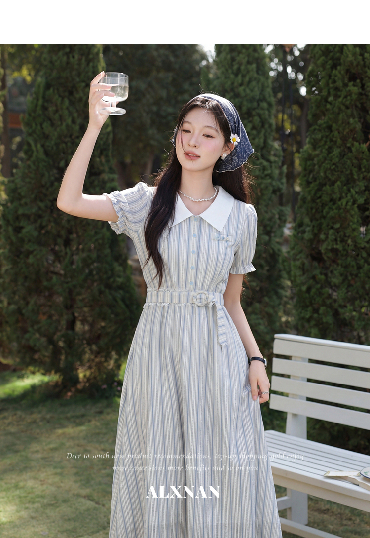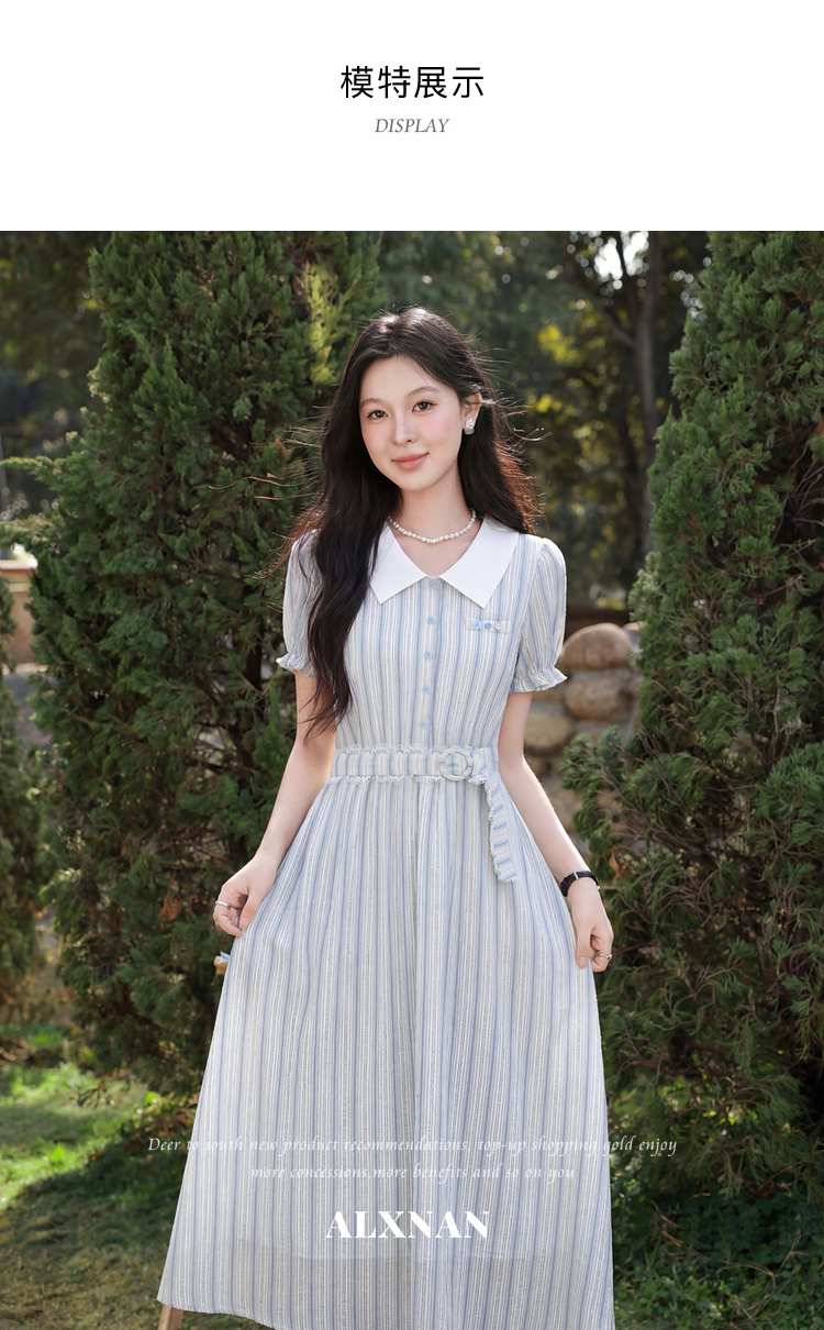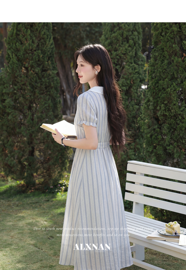 鹿向南「夏屿温茶」浅蓝色衬衫连衣裙女夏季新款洋气法式修身长裙