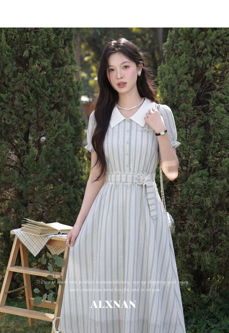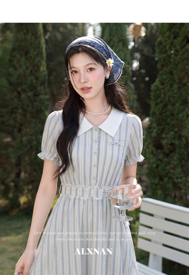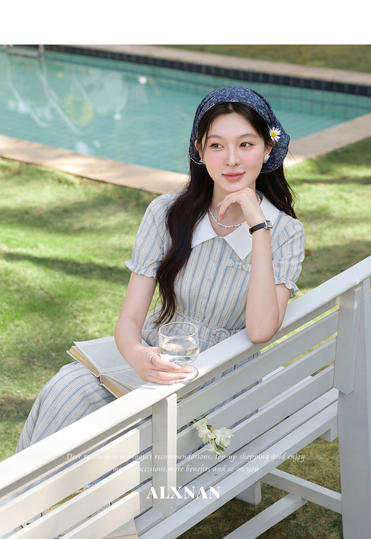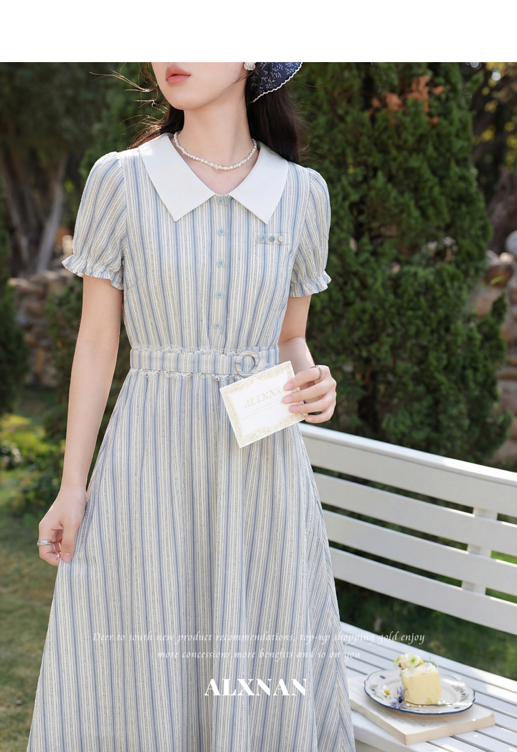 鹿向南「夏屿温茶」浅蓝色衬衫连衣裙女夏季新款洋气法式修身长裙