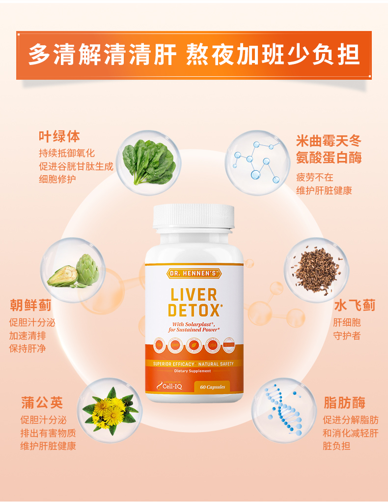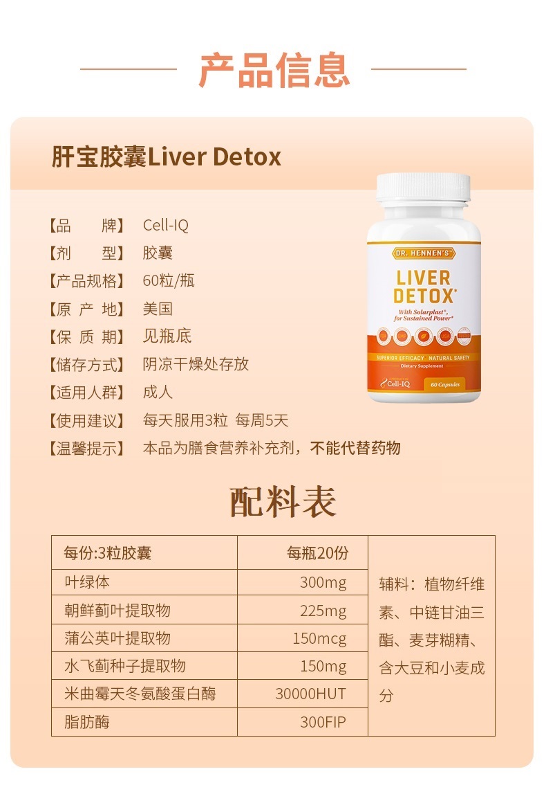 美国Cell-IQ汉拿博士肝宝胶囊 解酒加班应酬熬夜排d伉氧肝脏健康