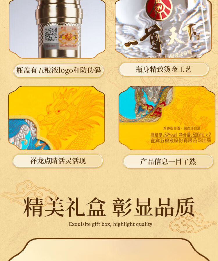 五粮液 52度 一尊天下礼盒 浓香型白酒 500ml*2瓶