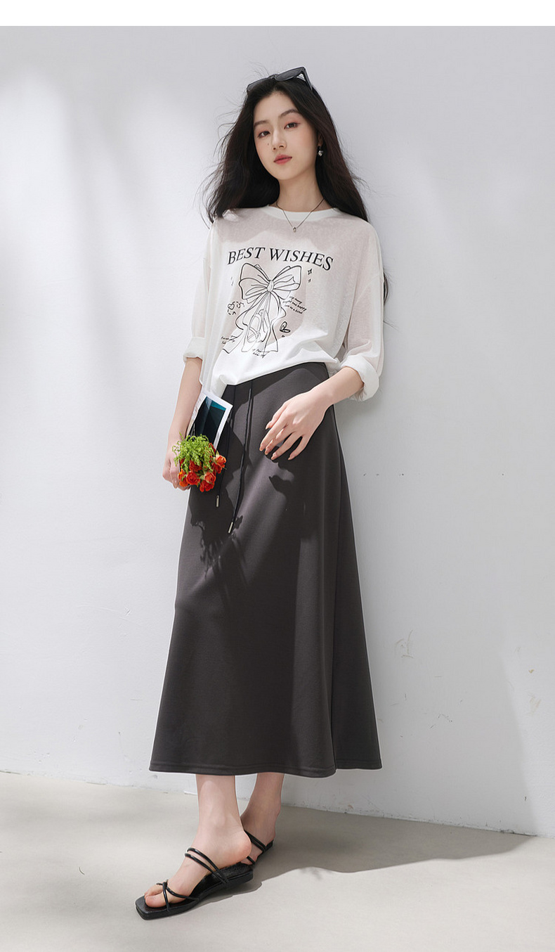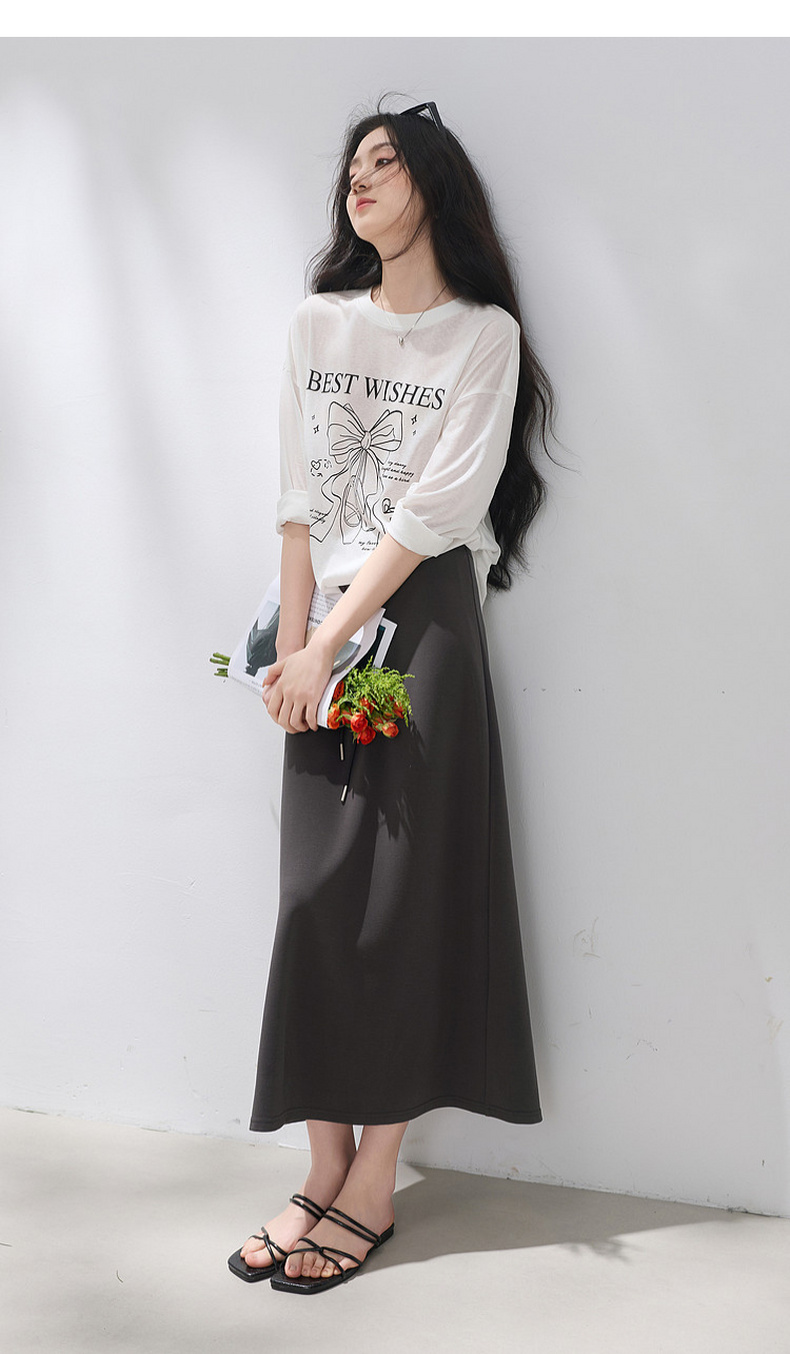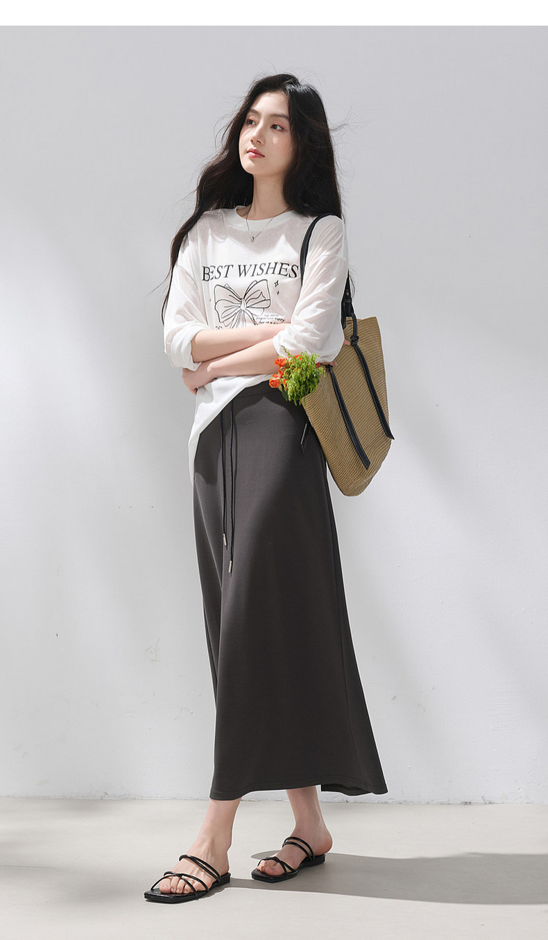 三彩2026夏季新款休闲半身裙松紧腰直筒裙长裙宽松M