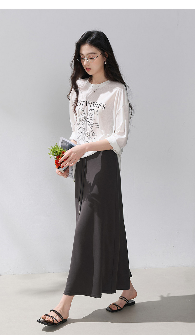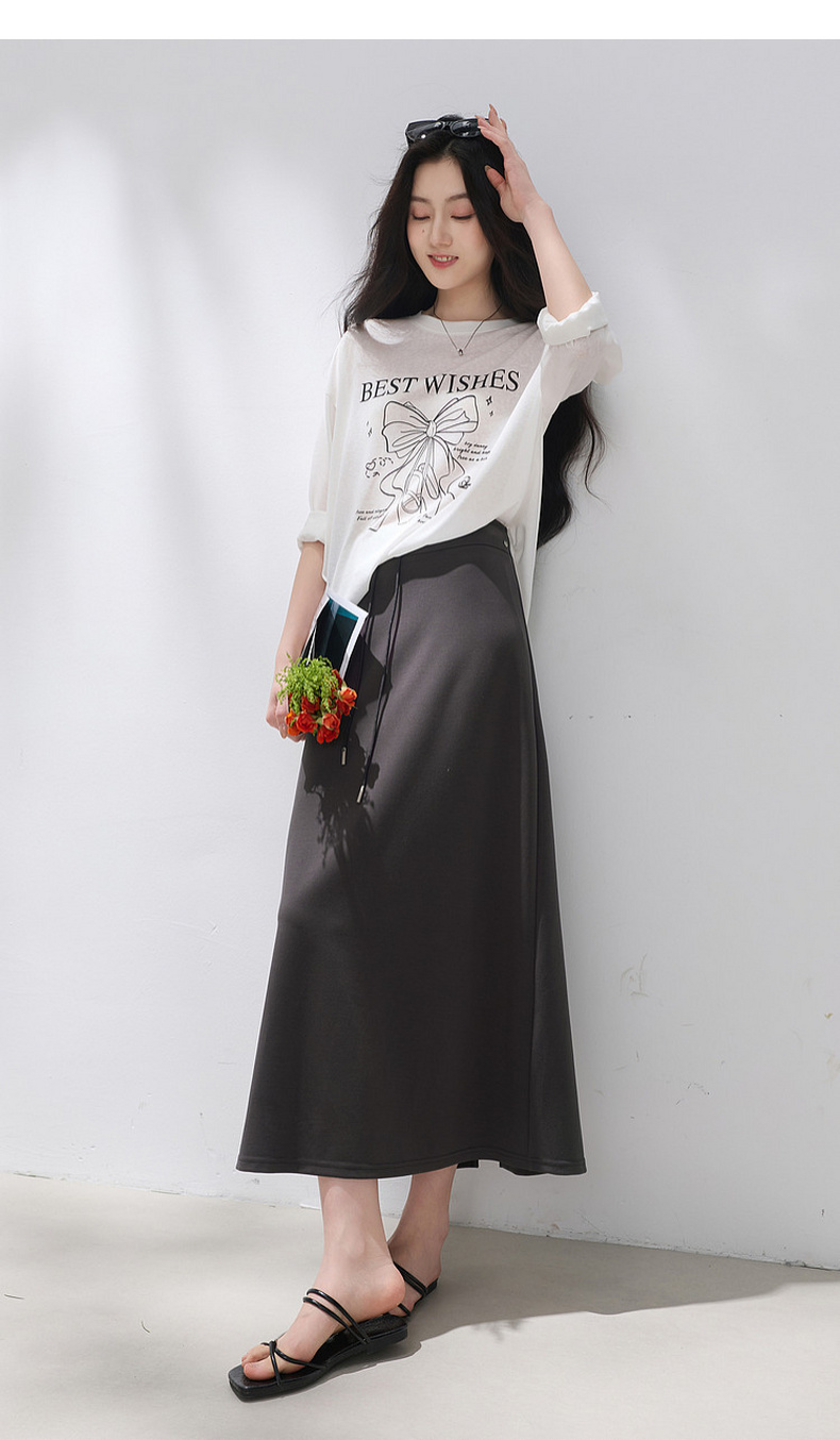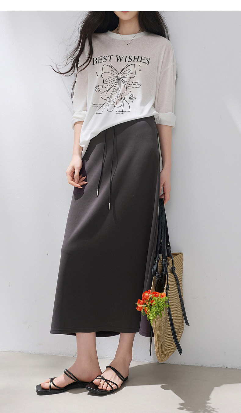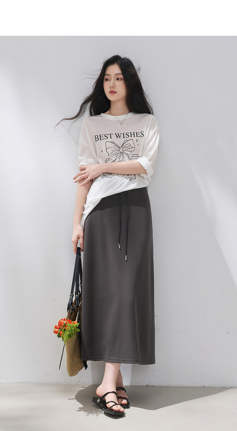 三彩2026夏季新款休闲半身裙松紧腰直筒裙长裙宽松M