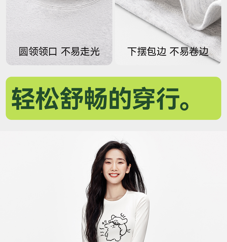 「棉的美学」掐腰长袖打底衫女印花冬季新款内搭上衣休闲长袖T恤