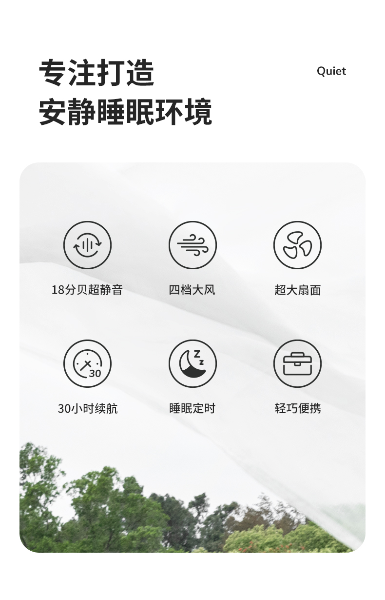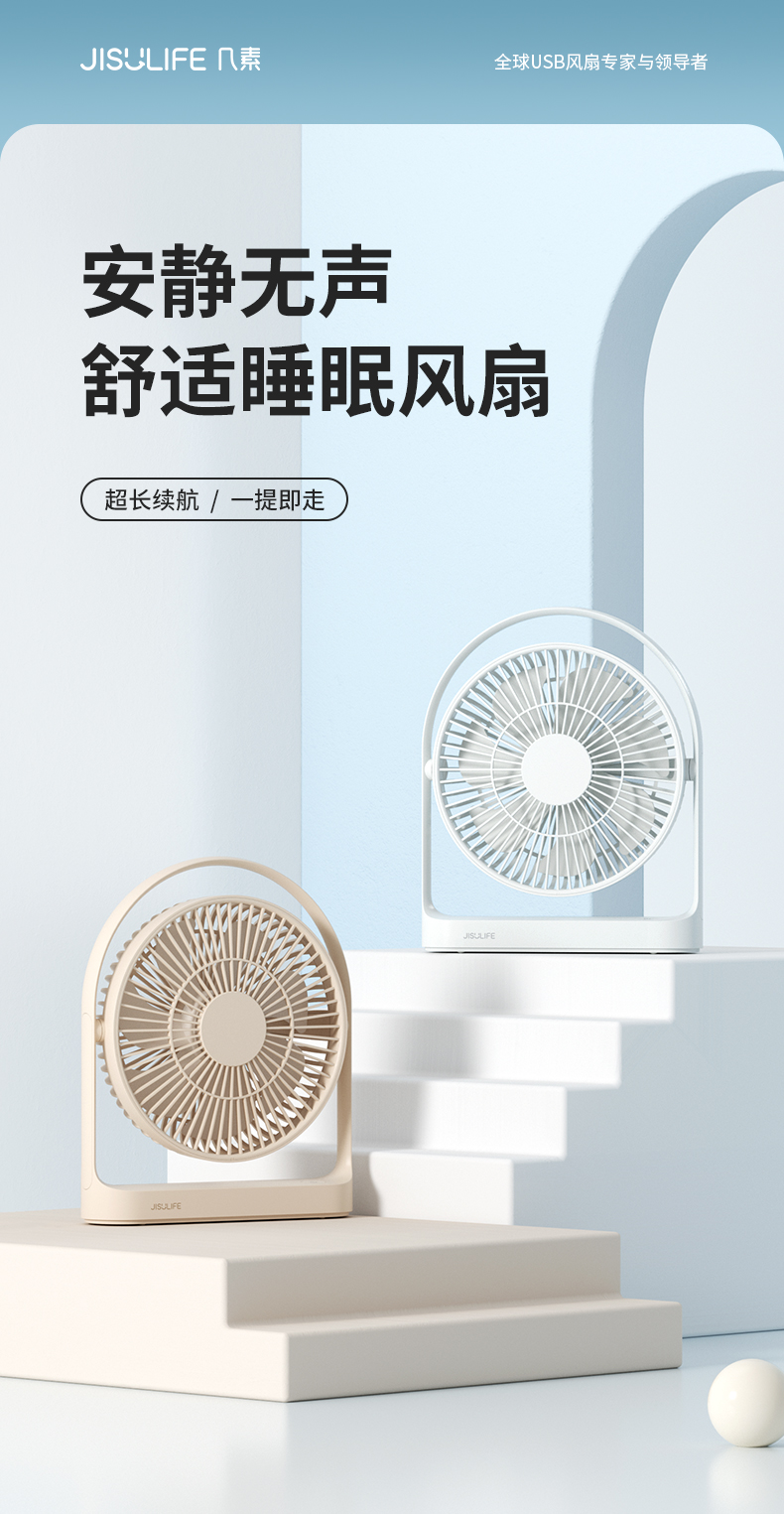 几素睡眠风扇台式桌面电风扇家用卧室空气循环扇办公室桌上小风扇学生宿舍床头定时消音无线续航台扇【消音定时睡眠款+30H续航】
