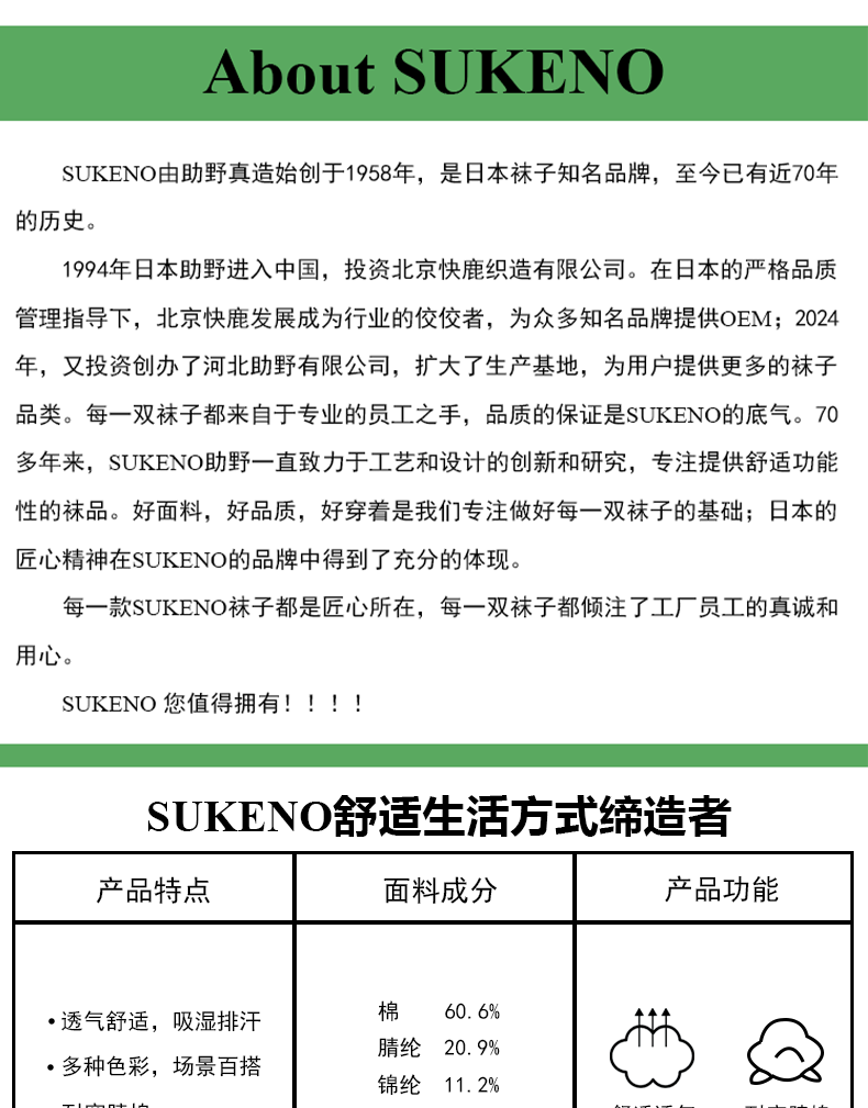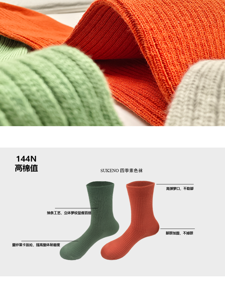SUKENO男袜中筒袜百搭日系纯色袜子四季款