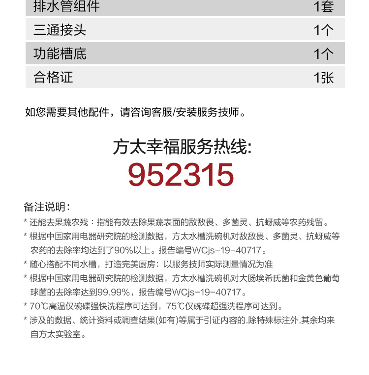 方太(FOTILE)【专柜款】方太水槽洗碗机JPSD1T-C3D超微气泡洗果蔬去农残洗海鲜高温杀菌单槽一体嵌入式刷碗机 【专柜款】单槽洗碗机C3D