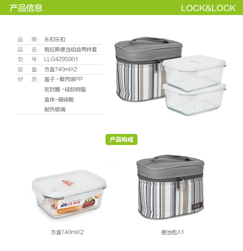 乐扣乐扣玻璃保鲜盒两件套 LLG429S901N