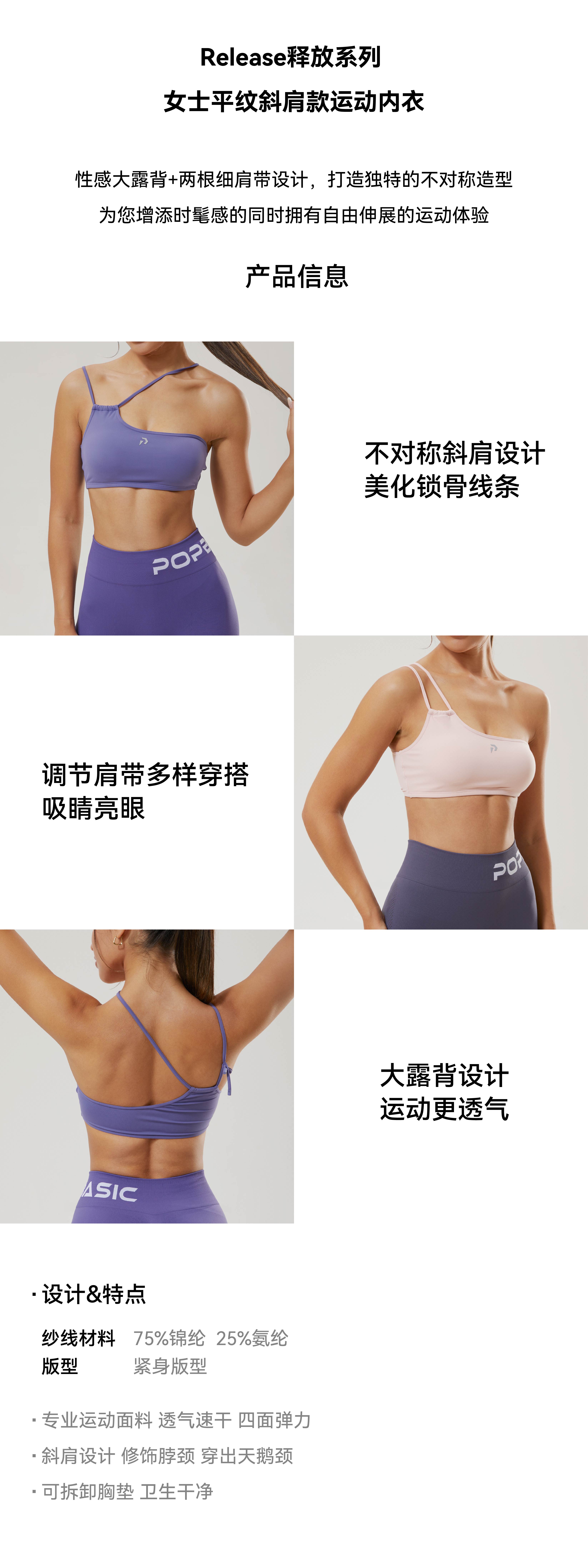 Release释放系列 女士平纹斜肩款运动内衣