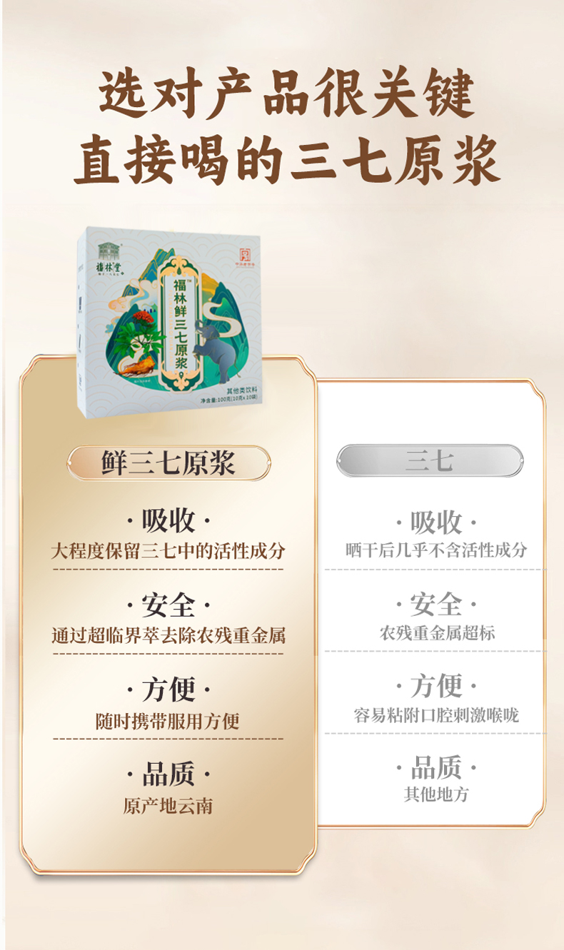 已下架【地道严选】福林鲜三七原浆100g/盒(10gx10袋)新鲜萃取