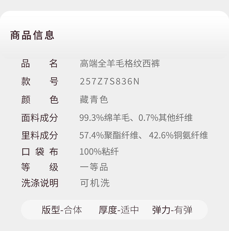 【钛金9号】高端全羊毛格纹西裤通勤商务必备秋季新品257Z7S836N[门店专款]