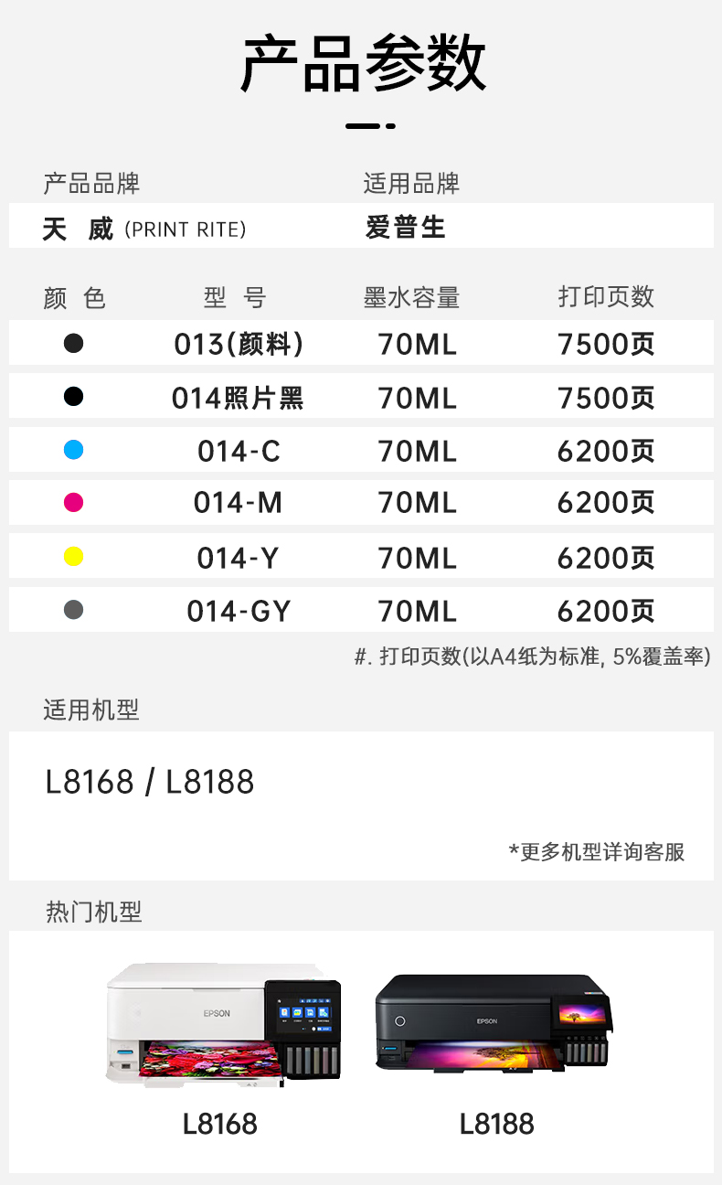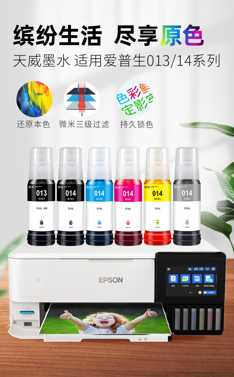 天威013墨水/014墨水 适用epson爱普生L8188 L8168喷墨打印机 墨仓式补充装专用彩色四色墨水