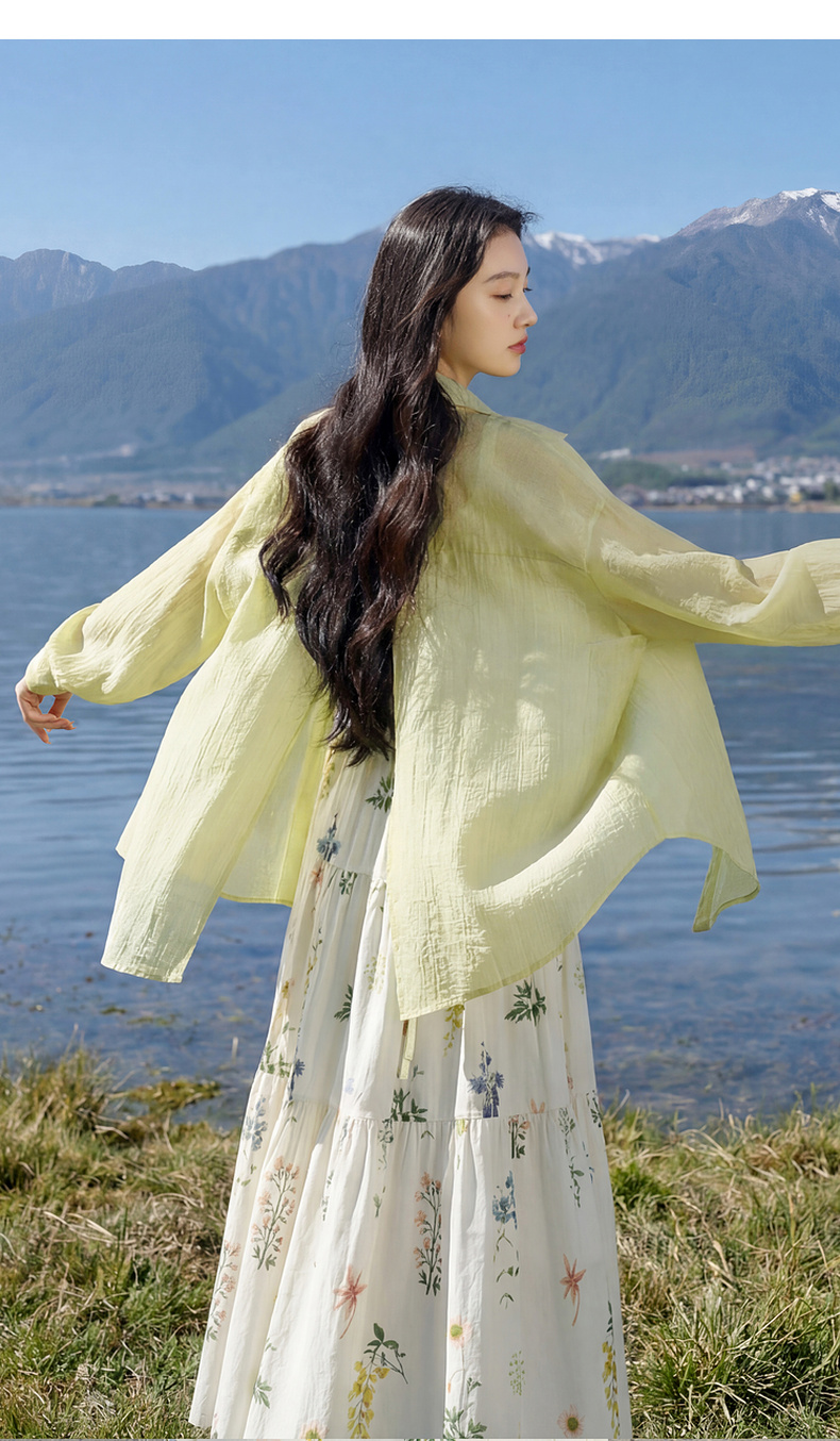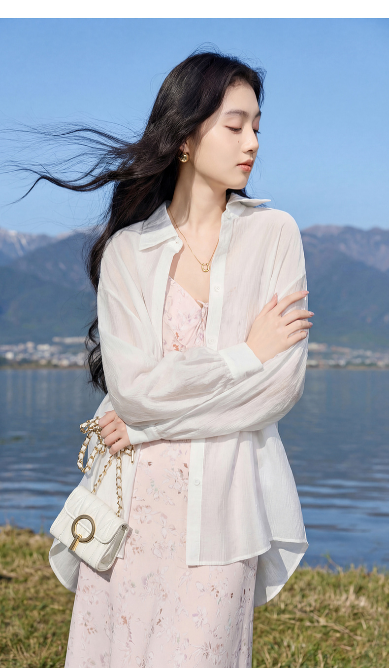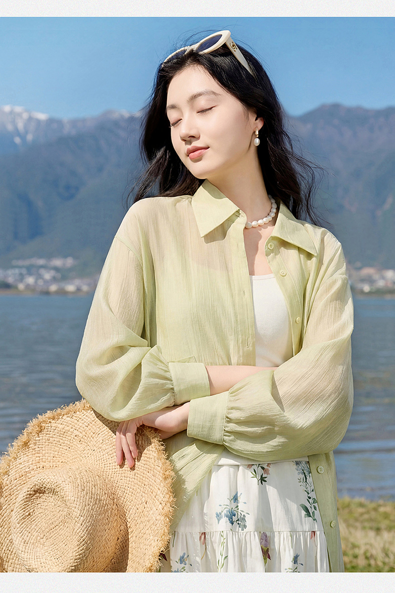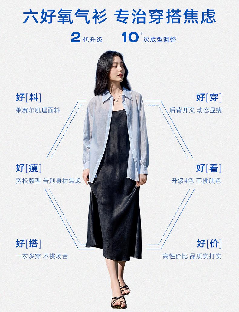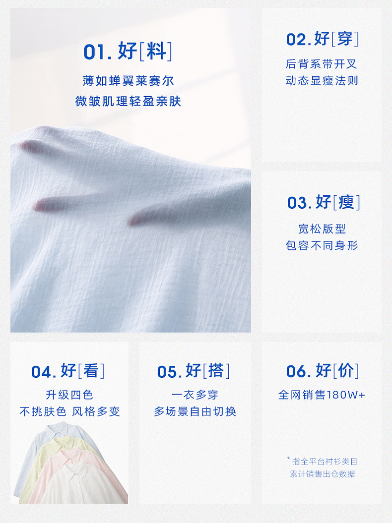 【六好氧气衫】三彩2026春季新款轻薄莱赛尔衬衫衬衣宽松开叉Z