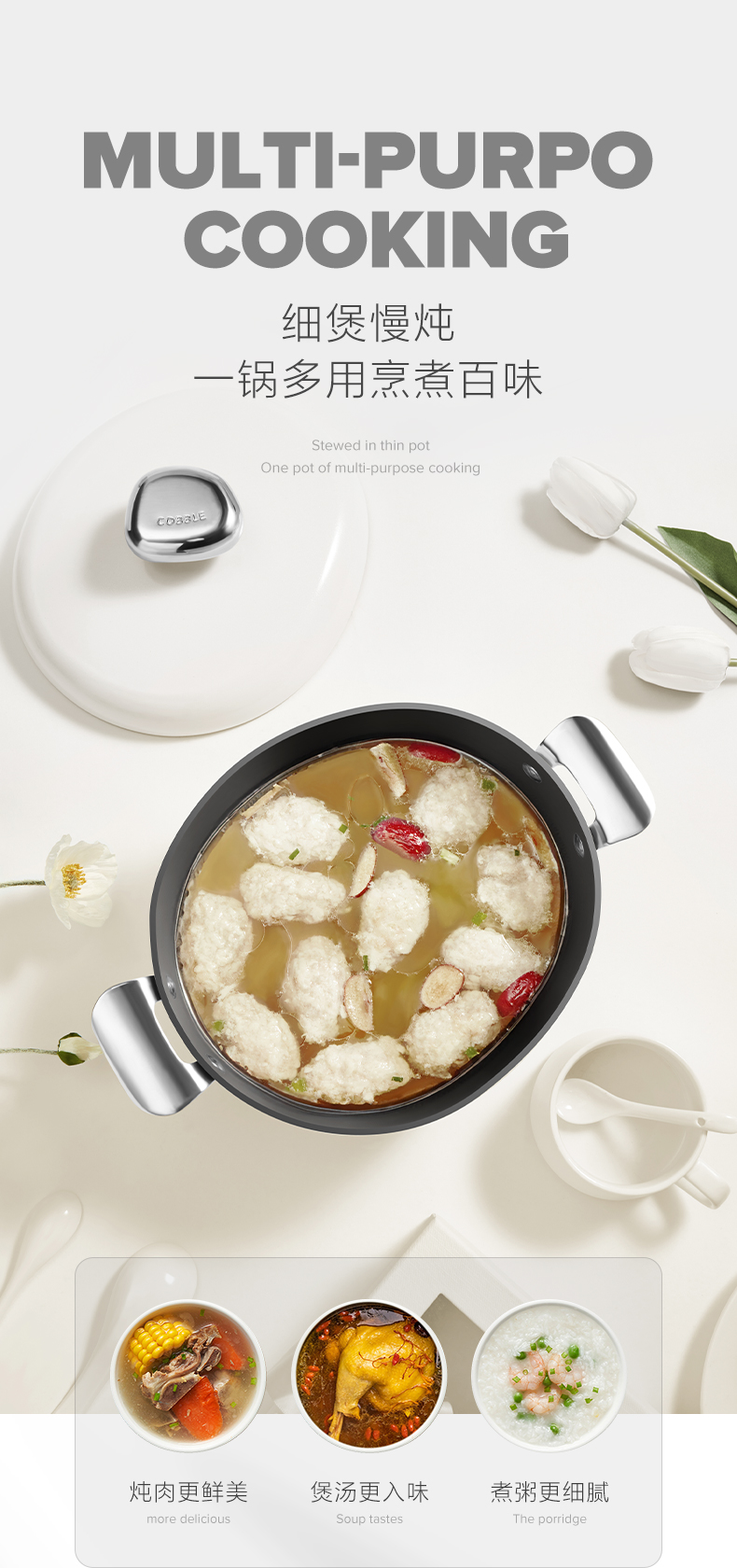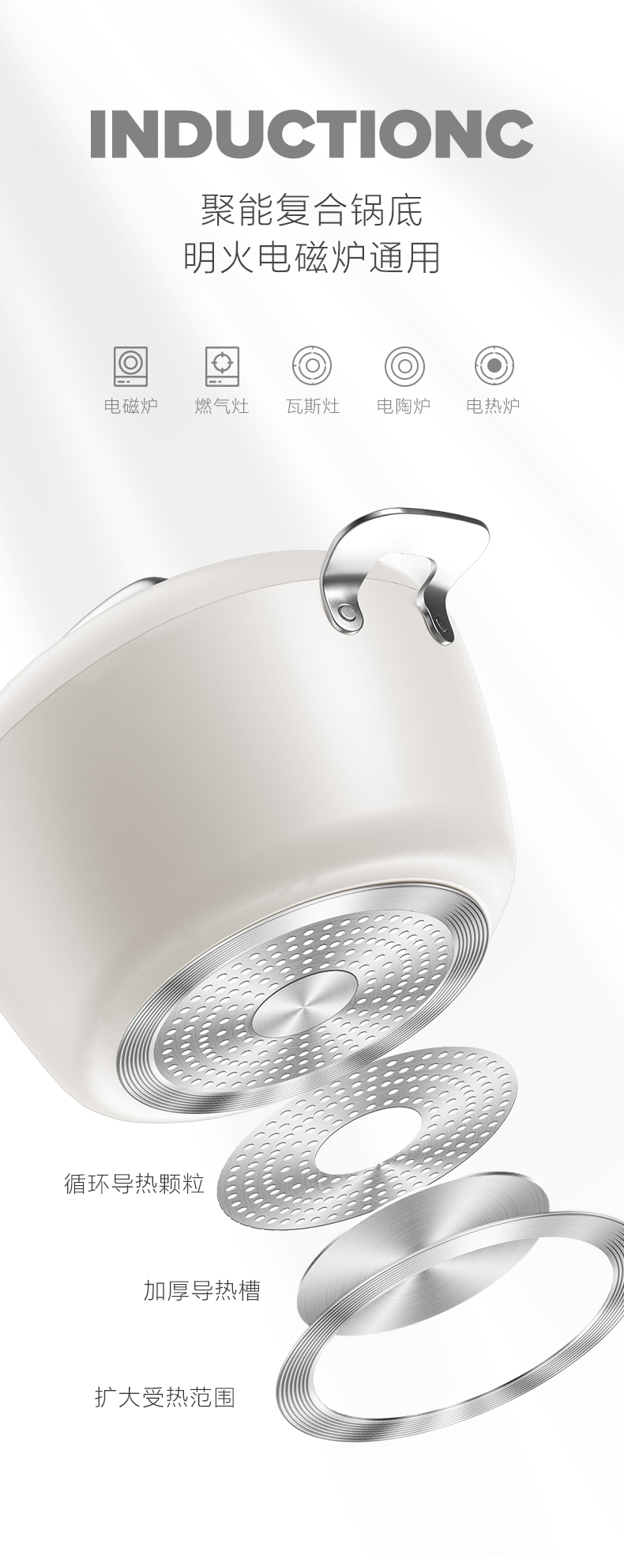 VELOSAN温仑山鹅卵石0涂层不粘汤锅24cmVP-2ETG01-5A24(白)