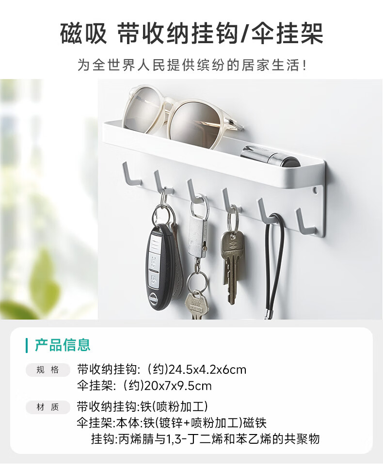 家用办公室客厅 磁吸带收纳挂钩磁吸伞挂架