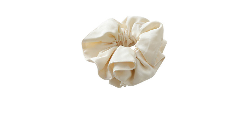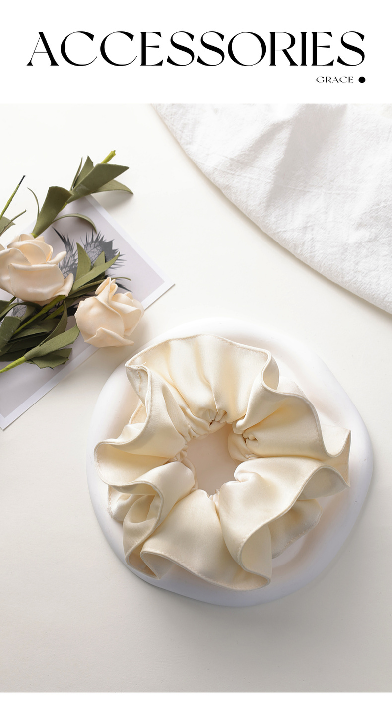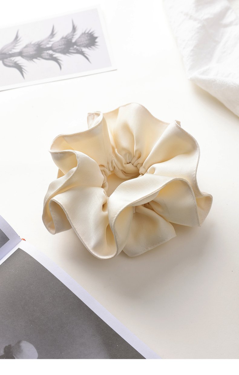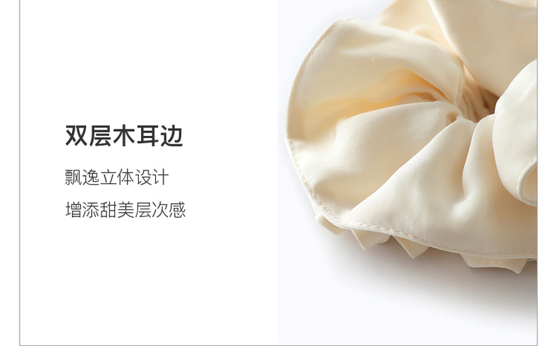 三彩2025新款温柔系奶白缎面发圈双层木耳边甜美头饰通勤约会扎发
