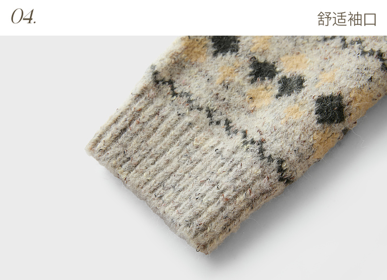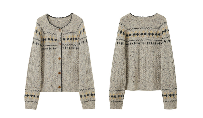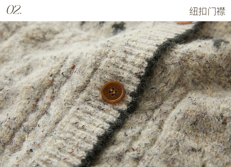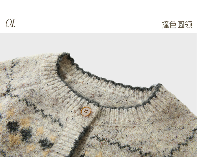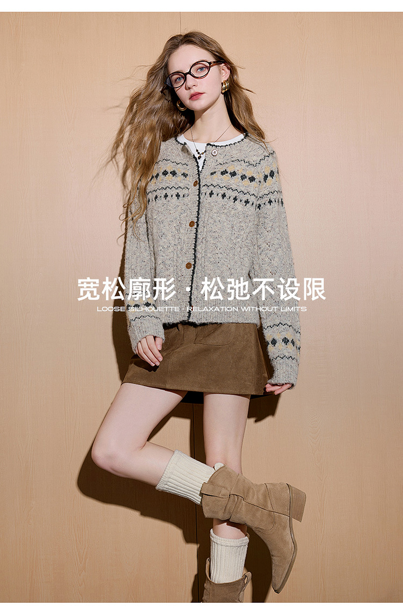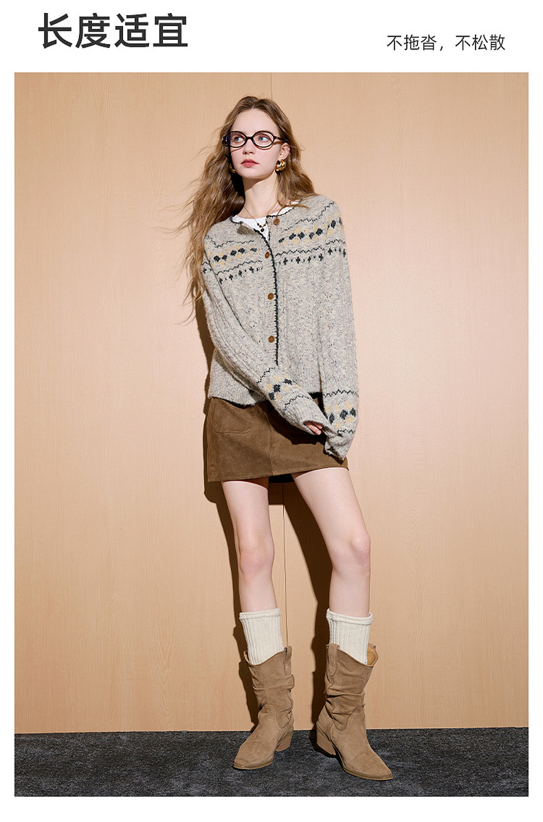 三彩2026春季新款宽松慵懒提花针织衫长袖单排扣开衫复古外套M