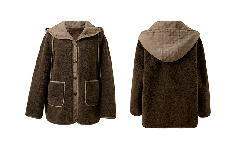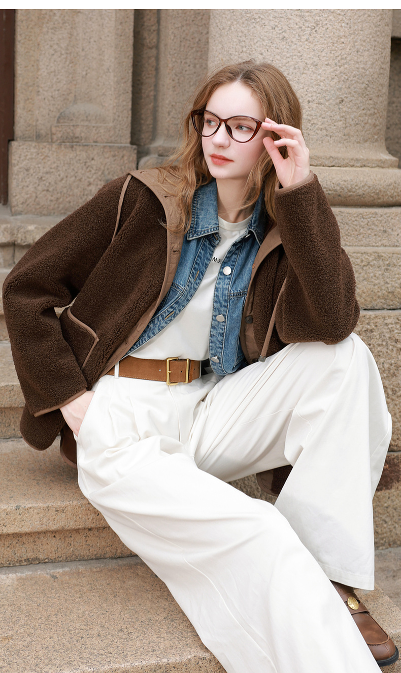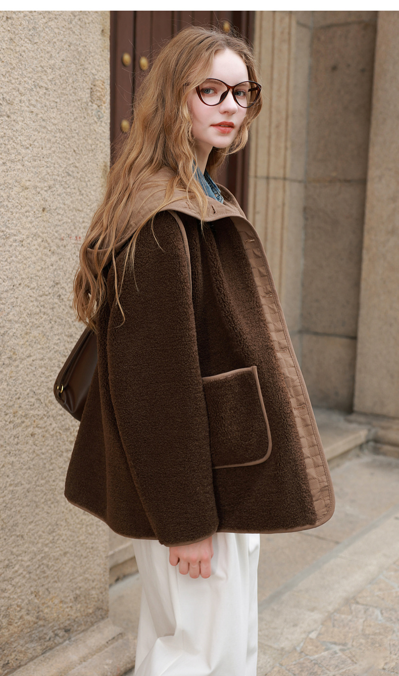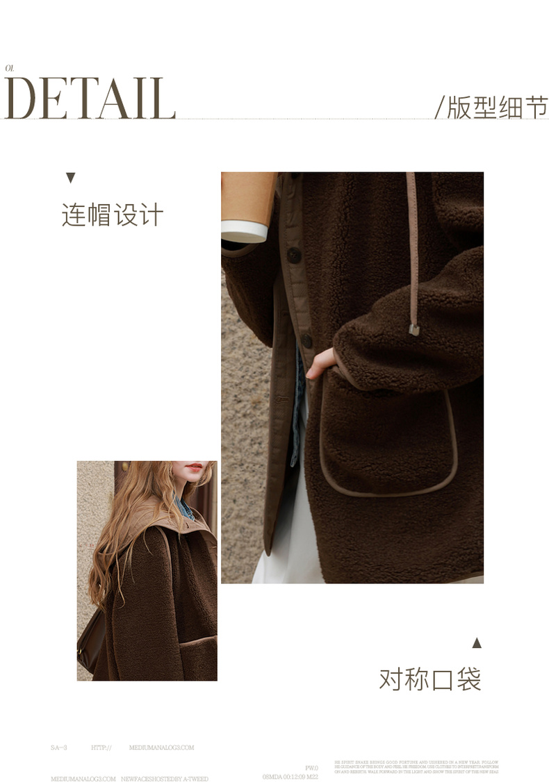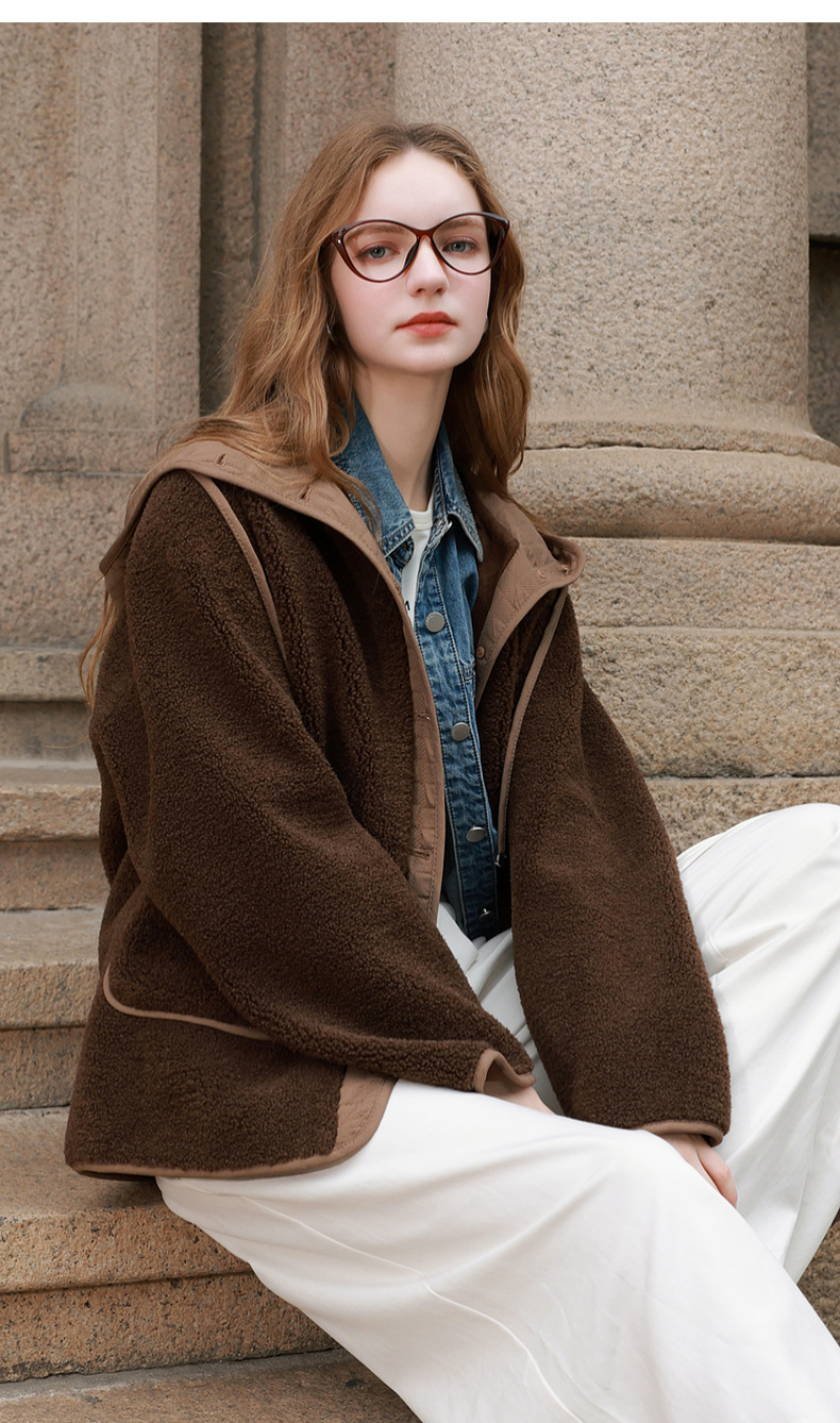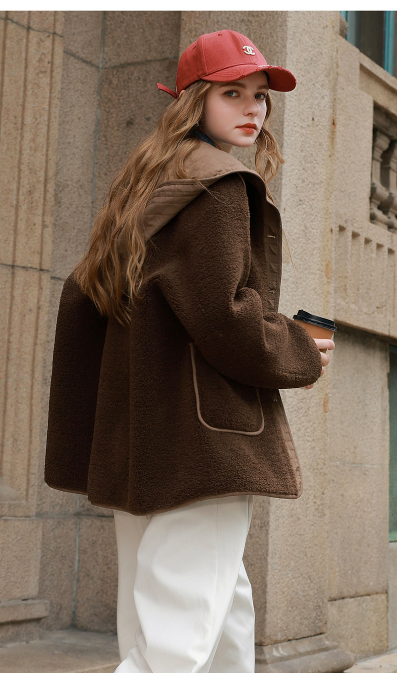 三彩2025冬季新款环保皮草连帽拼接毛毛外套宽松保暖M