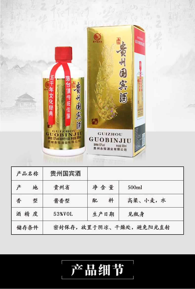 贵州台皇子茅台镇国宾酒酱香型53度白酒500ml×6瓶