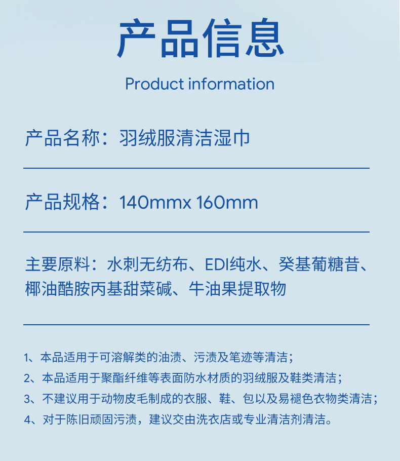 羽绒服去渍湿纸巾(独立包装/小包装)