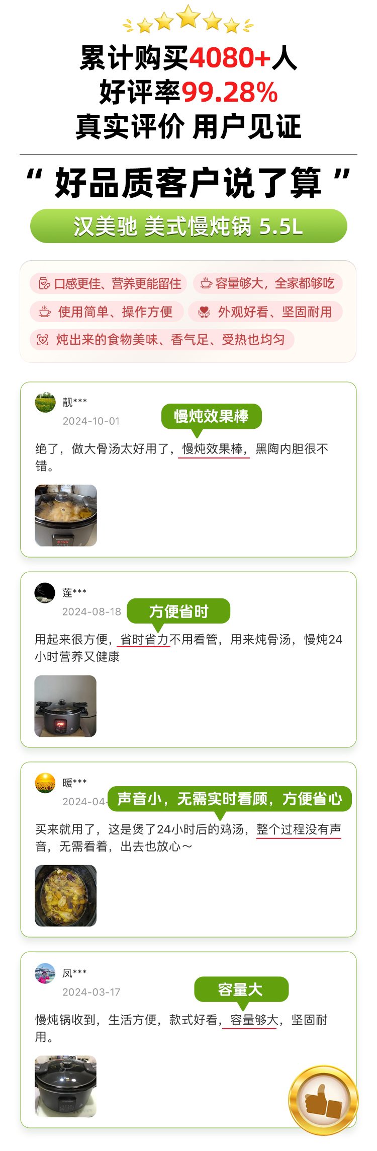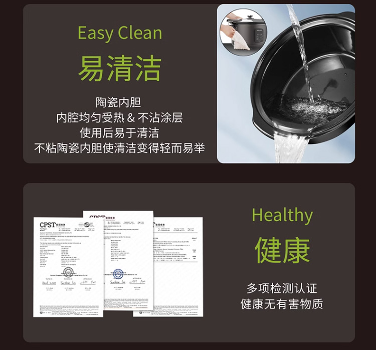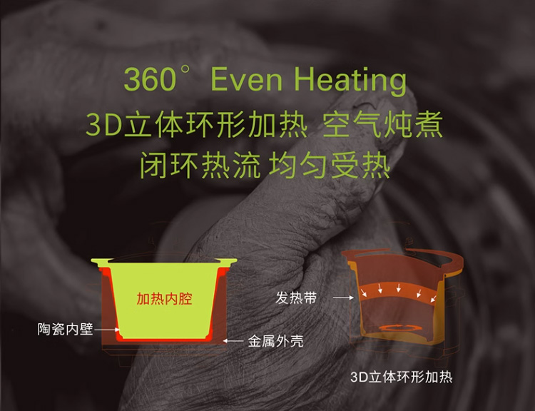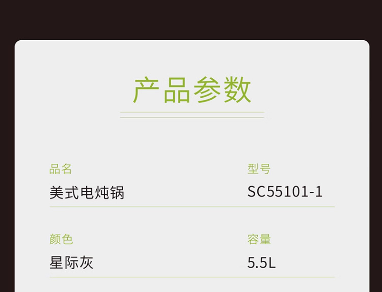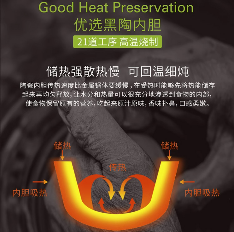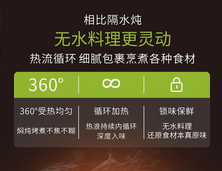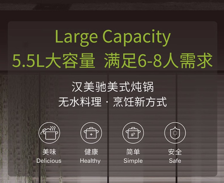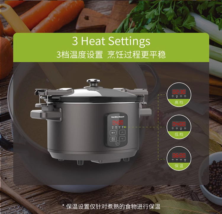 【3D立体环绕加热】汉美驰 美式慢炖锅 5.5L 优选黑陶内胆