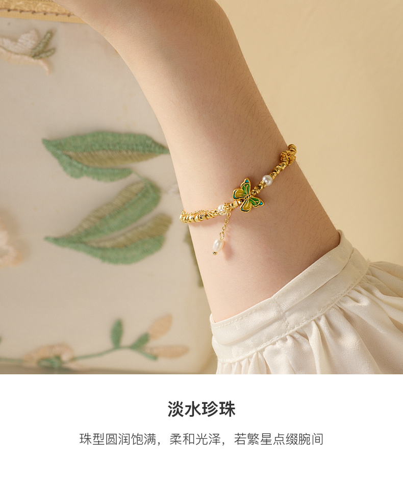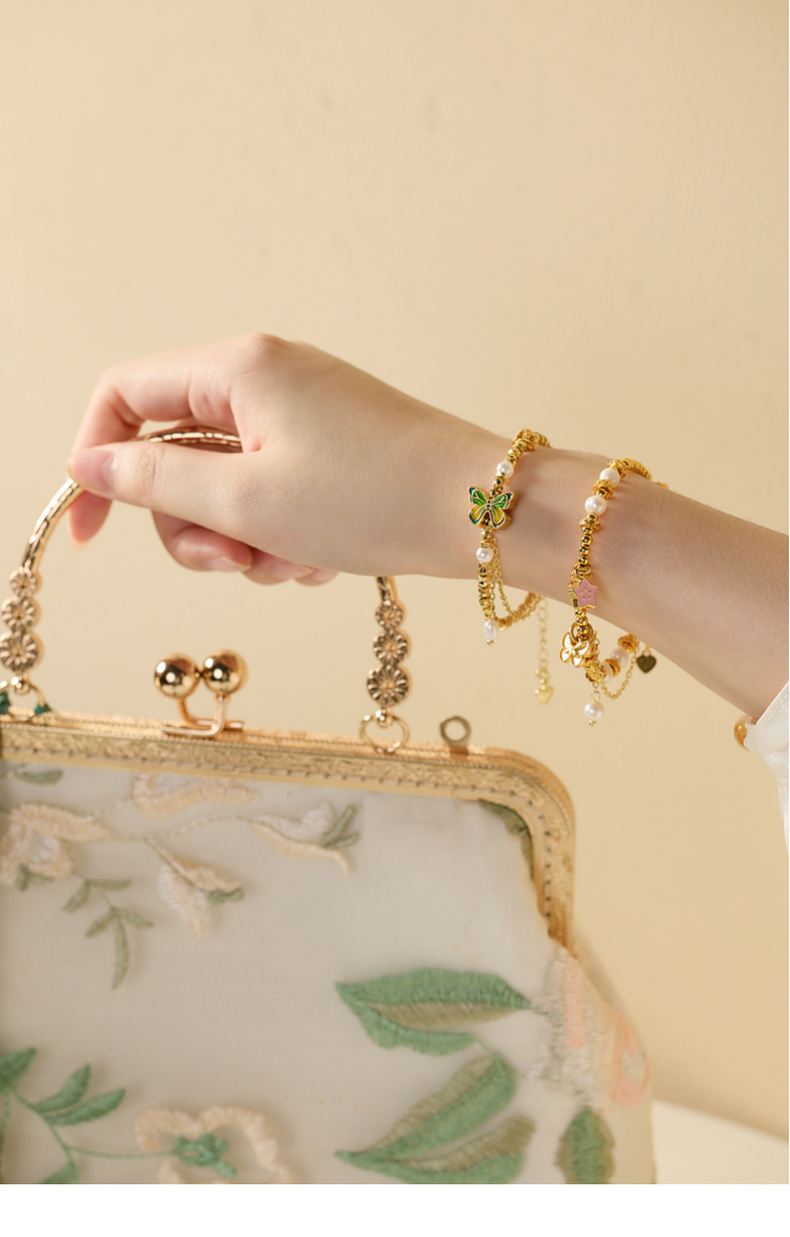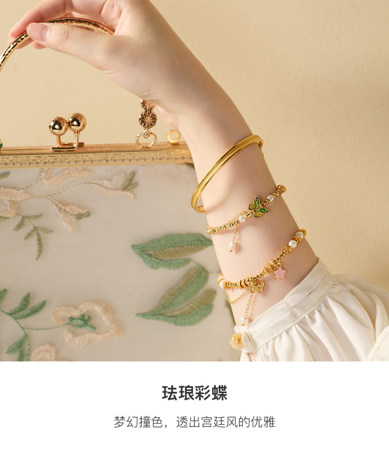 三彩2025新款珐琅彩蝴蝶手链淡水珍珠星星金珠女送礼通勤可调节