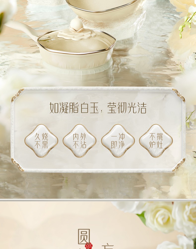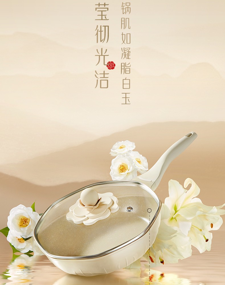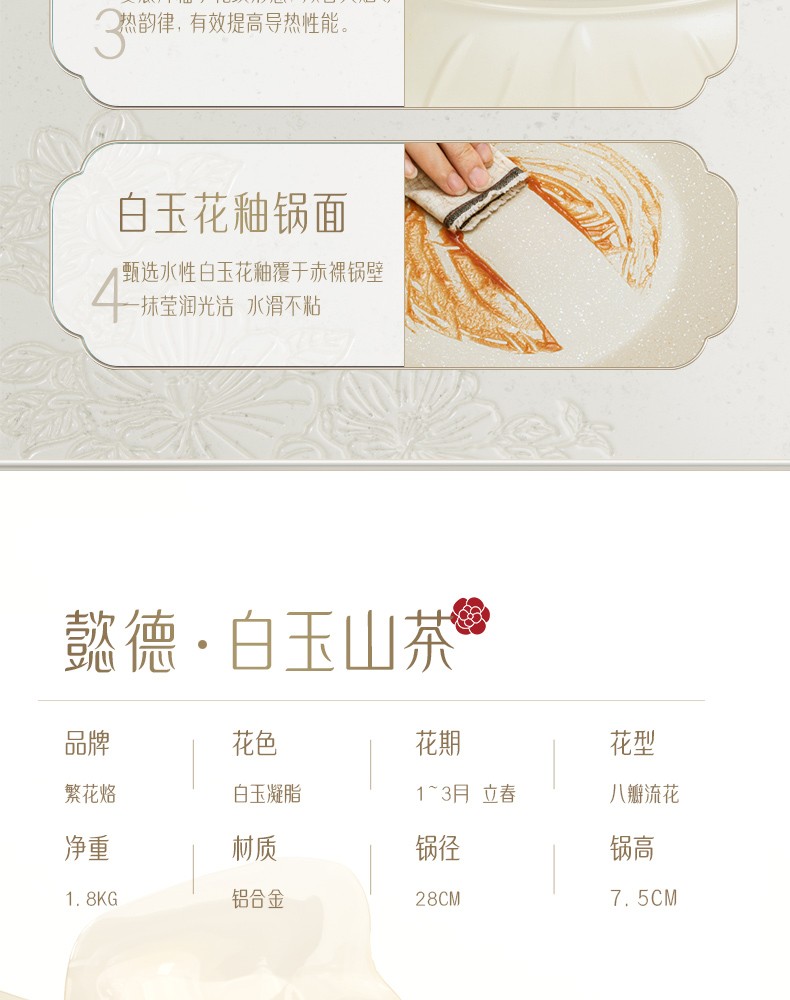 繁花烙 煎锅平底锅白玉山茶锅煎锅28CM大口径不粘锅家用煎蛋饼电磁炉 白玉山茶煎锅【懿德】28CM
