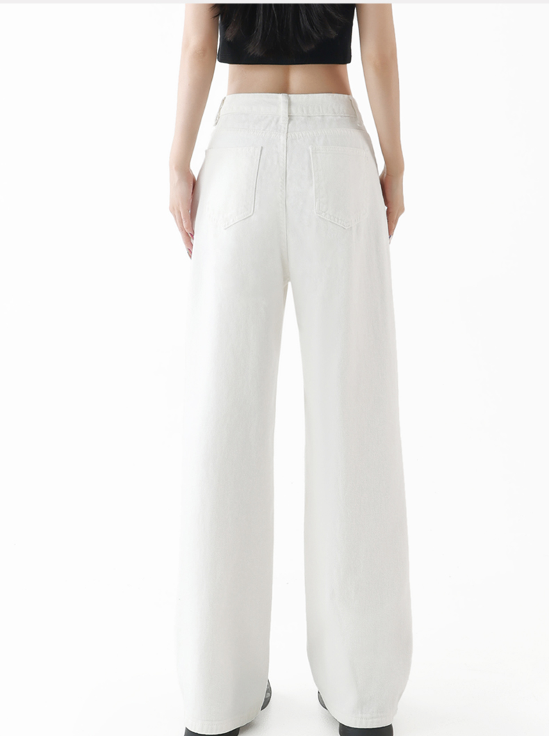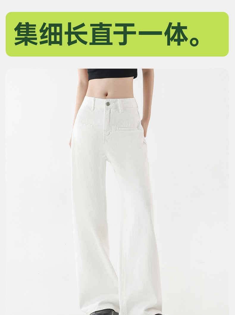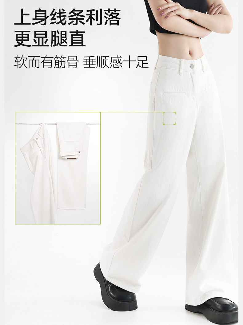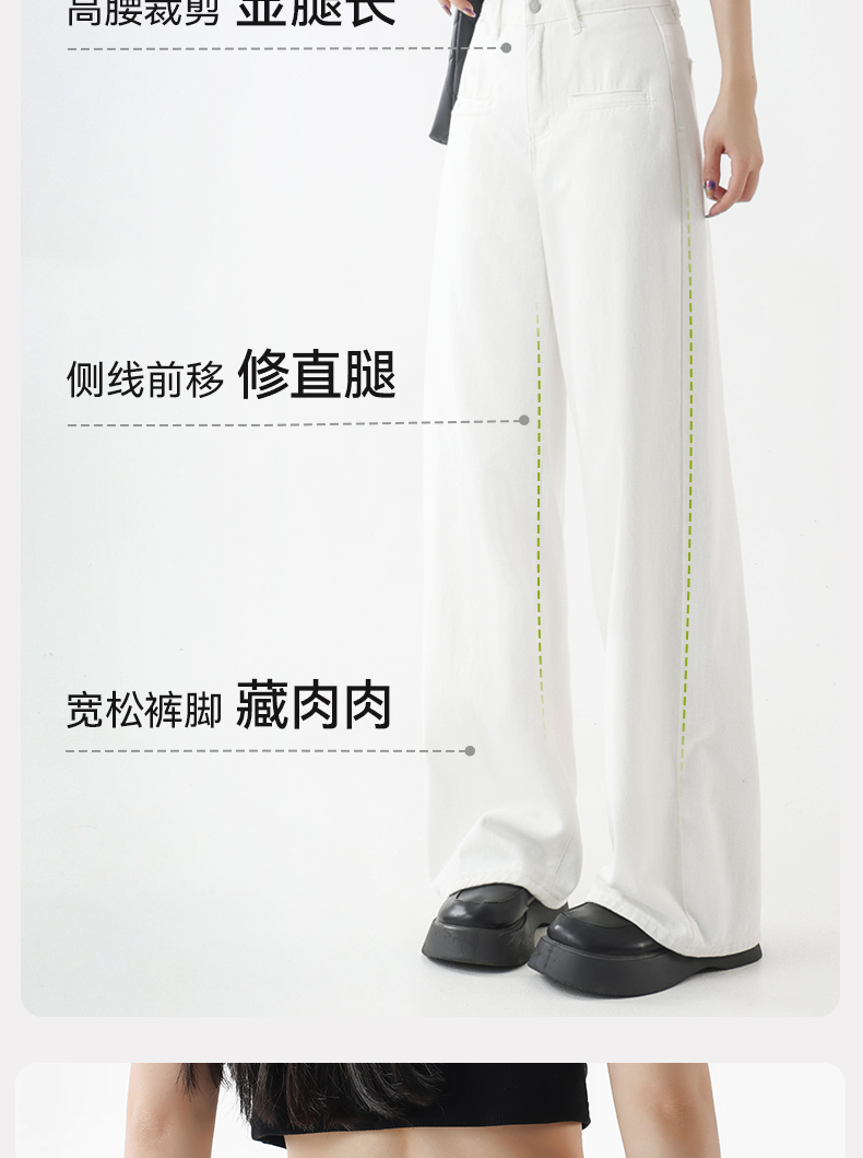「棉的美学」高级感白色阔腿牛仔裤女夏季2025新款小个子高腰宽松直筒裤子【卡码拍小】
