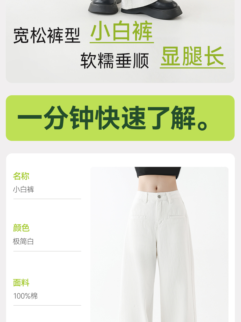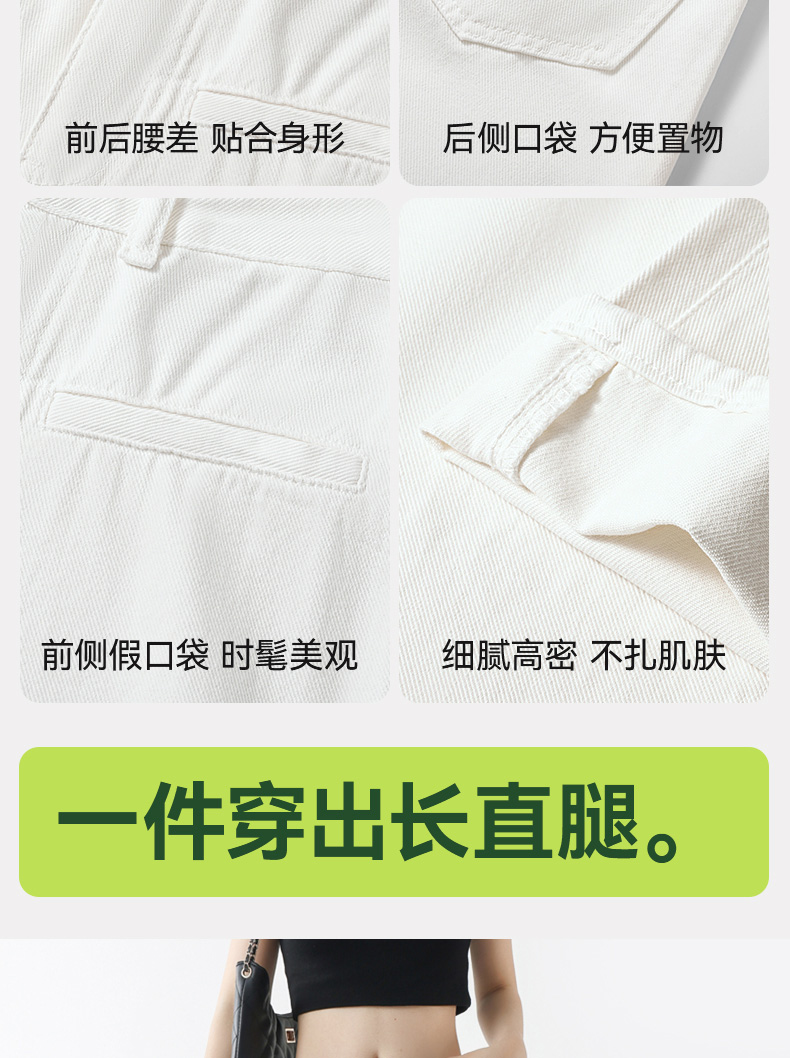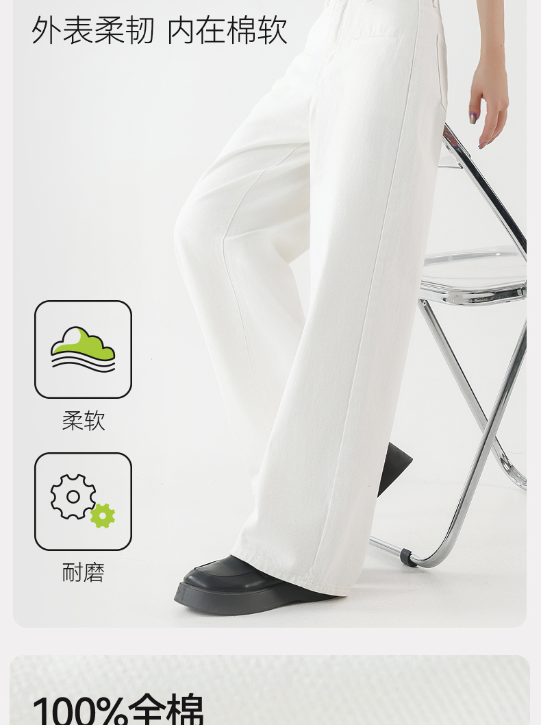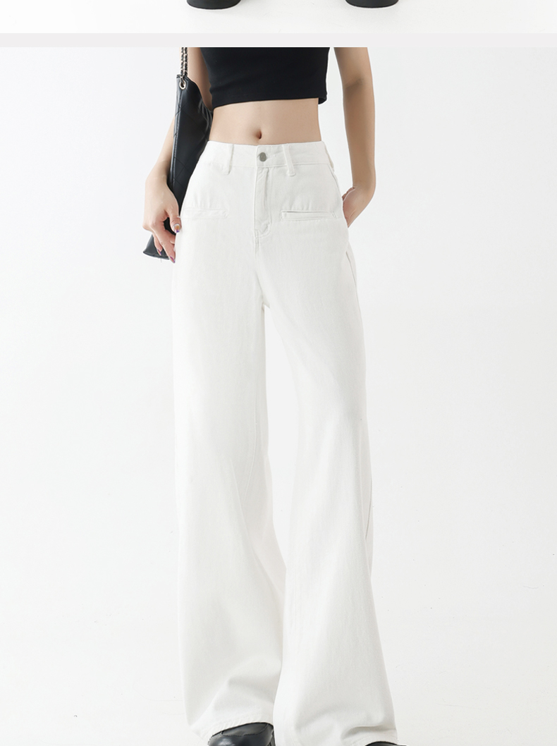 「棉的美学」高级感白色阔腿牛仔裤女夏季2025新款小个子高腰宽松直筒裤子【卡码拍小】