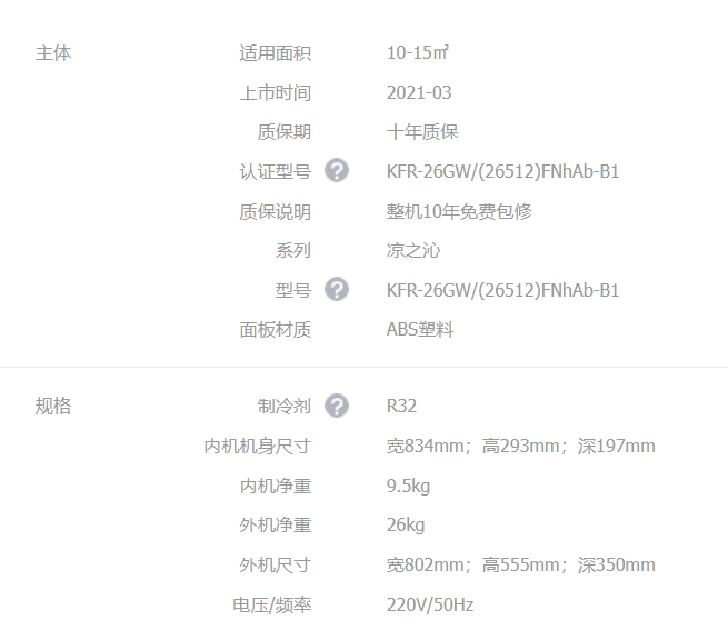 格力/空调/KFR-26GW/(26512)FNhAb-B1/凉之沁 变频冷暖 1匹 1级能效 挂机空调