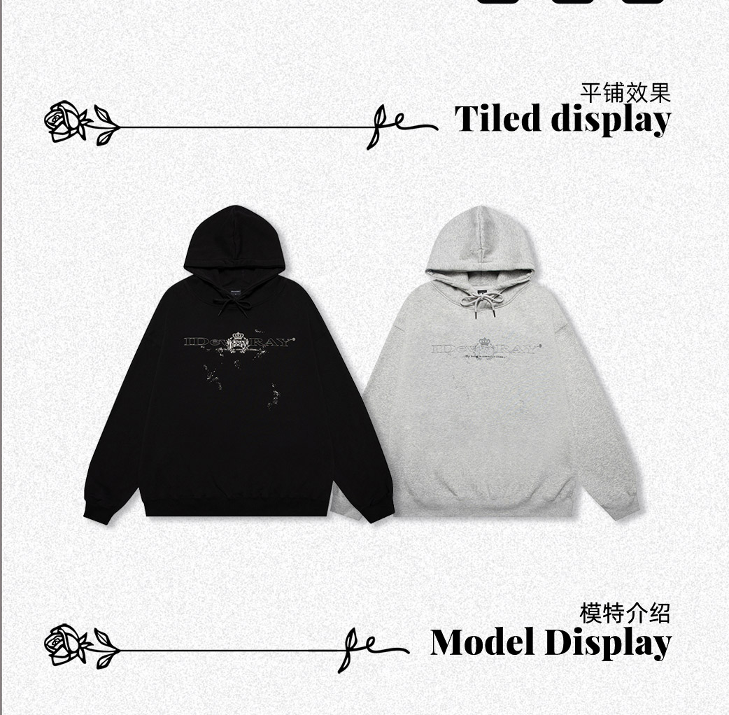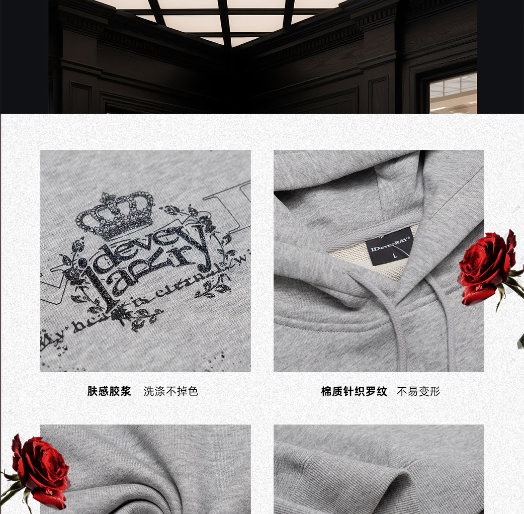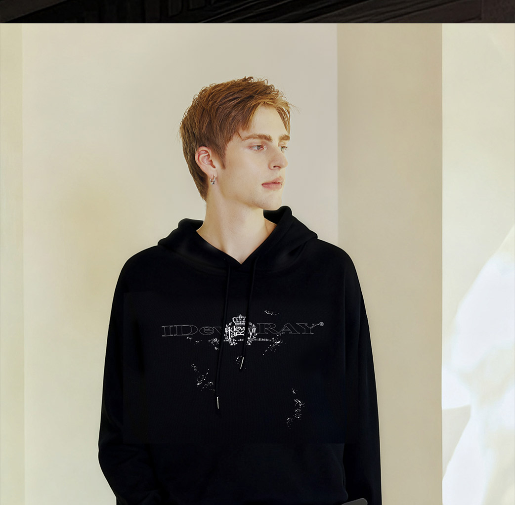 IDEVERRAY秋冬泼墨皇冠黑色连帽卫衣宽松慵懒男女情侣复古连帽衫