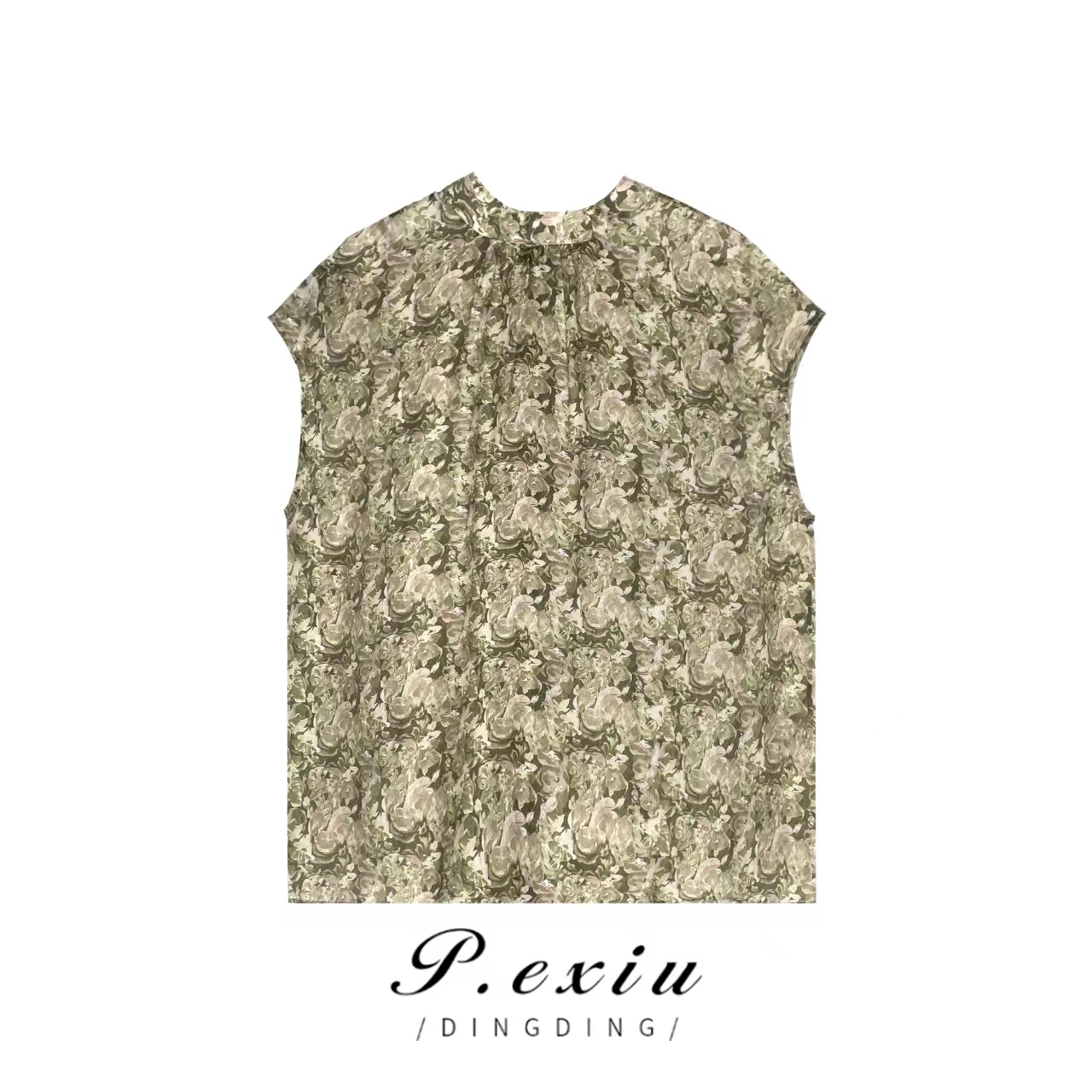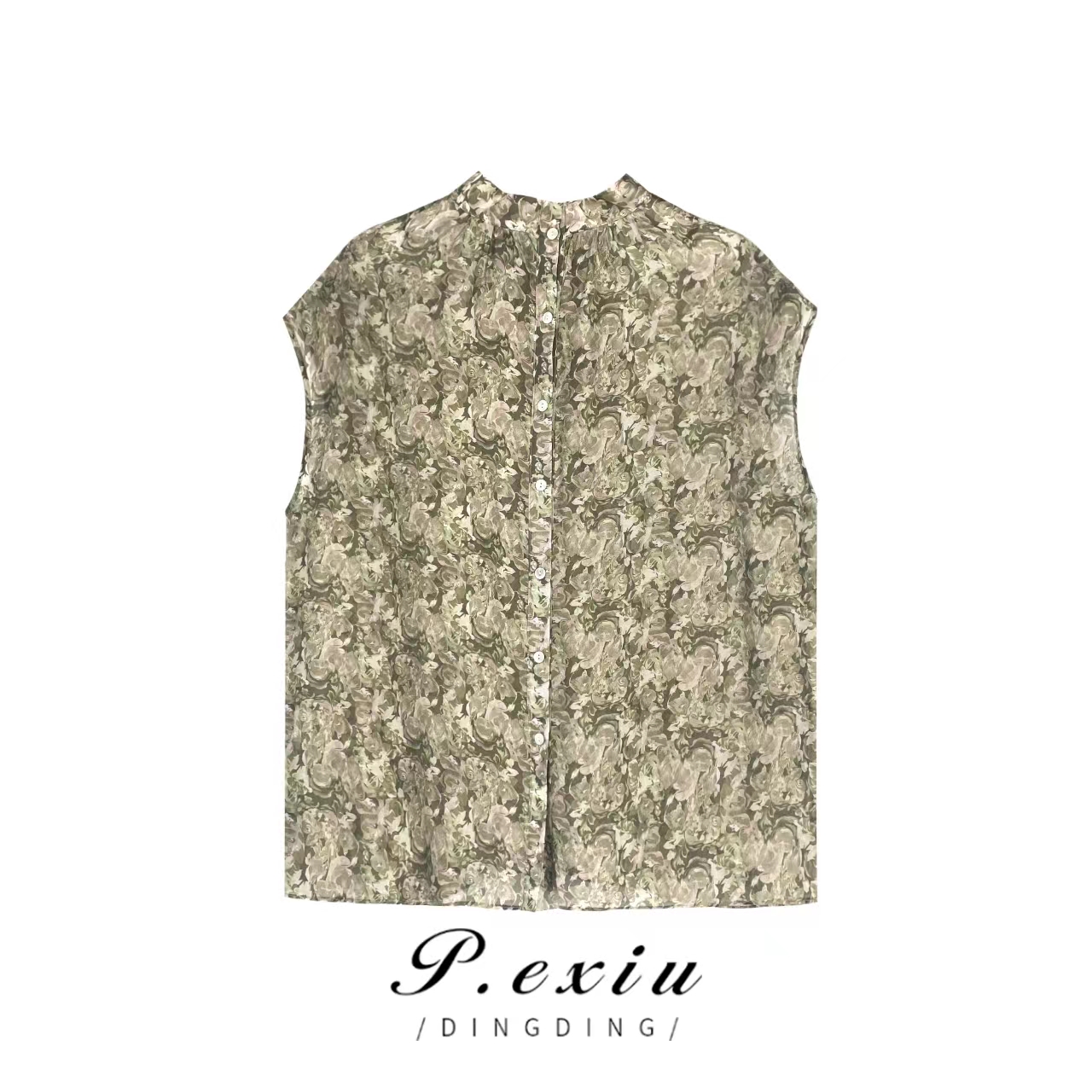 04-3潘依绣丁丁宠粉【两面穿】天丝显瘦碎花塌肩袖衬衫 W-61452