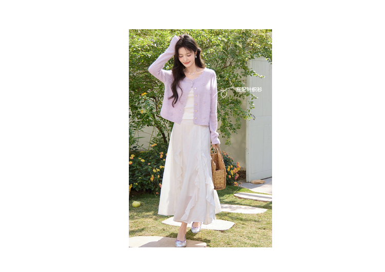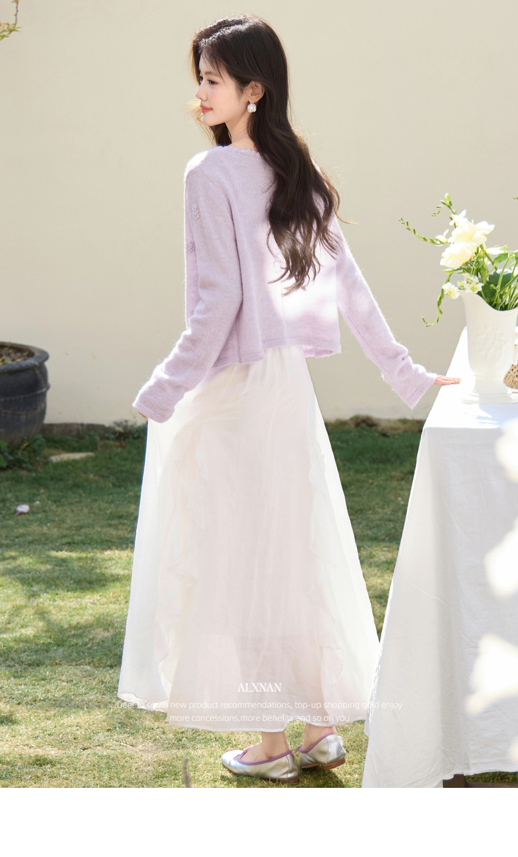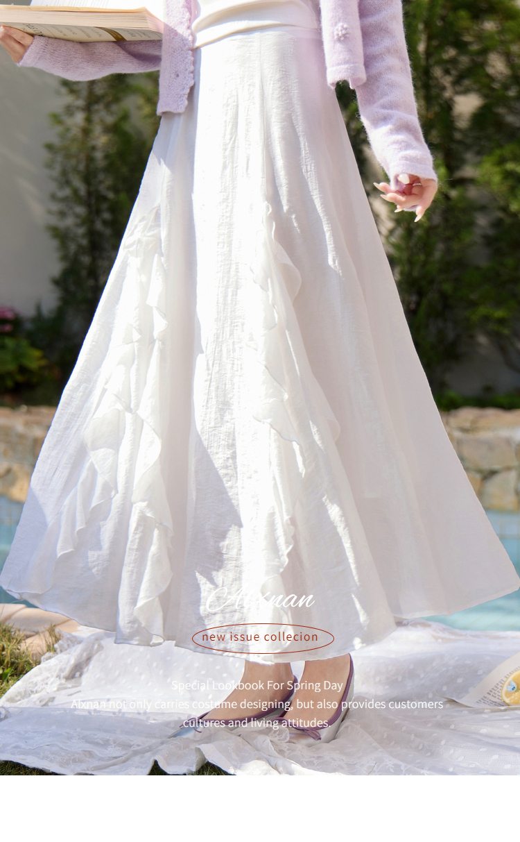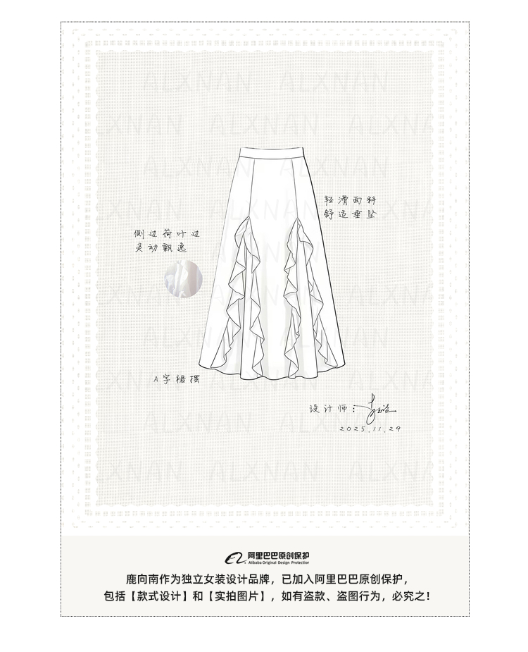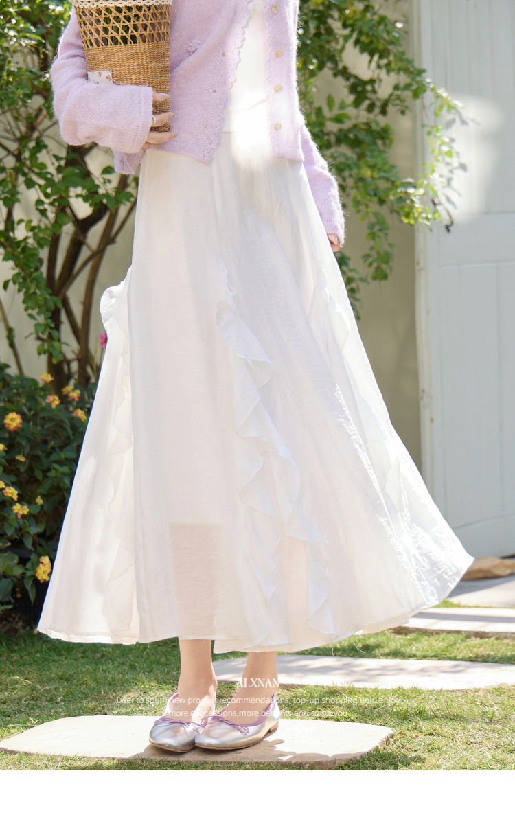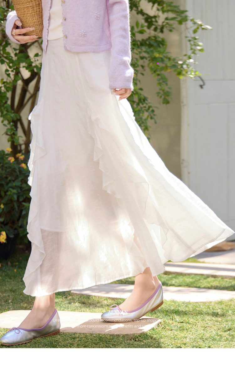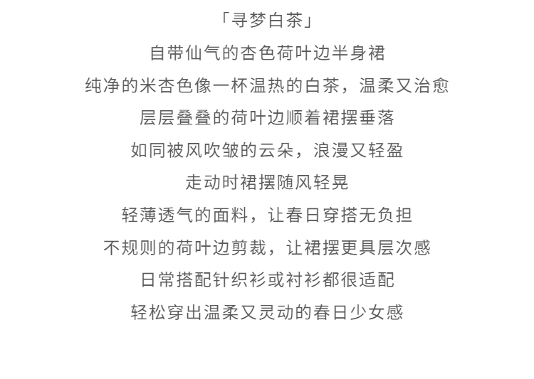 鹿向南「寻梦白茶」杏色荷叶边半身裙春季新款小众设计感A字裙女