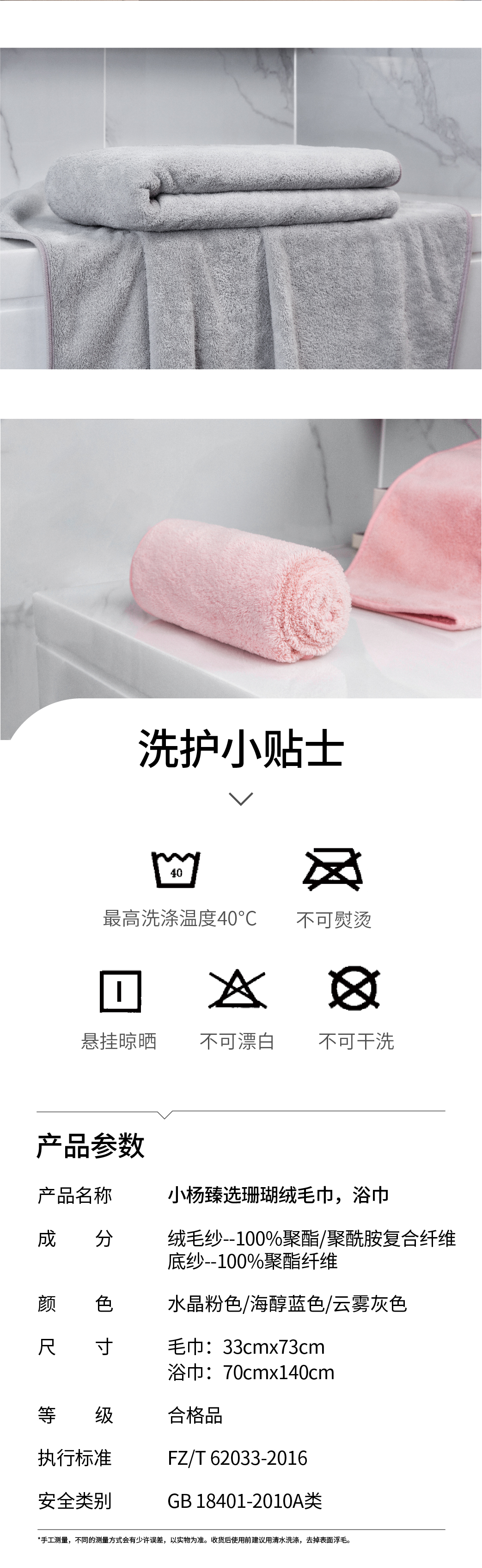 【小杨臻选】珊瑚绒毛巾浴巾 A类面料 柔软亲肤吸水