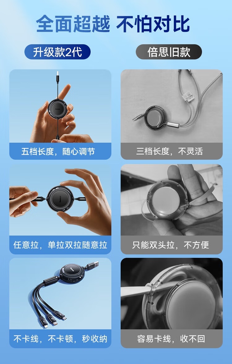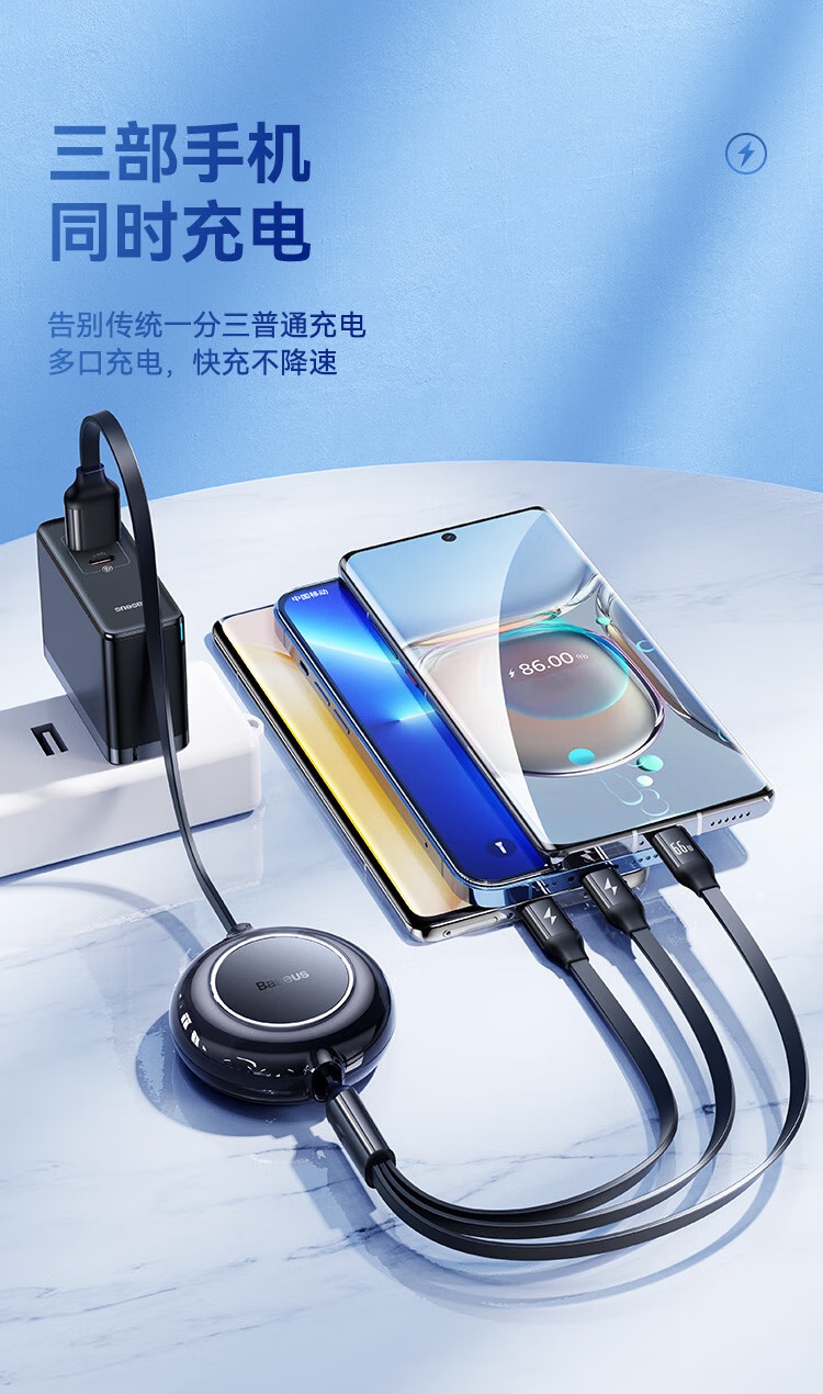 倍思 Baseus 随意拉伸一拖三快充数据线 明镜系列2 (66W) CB000007
