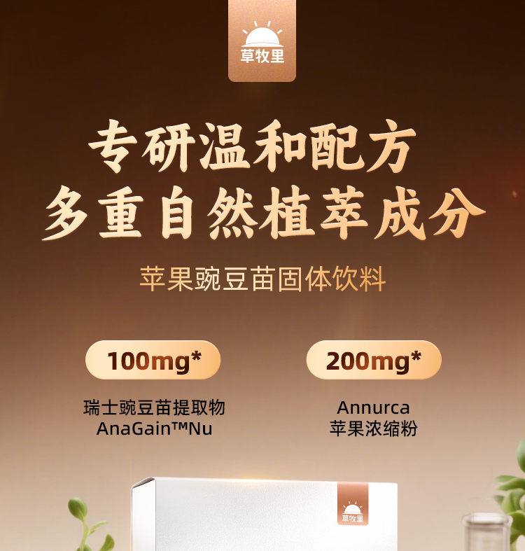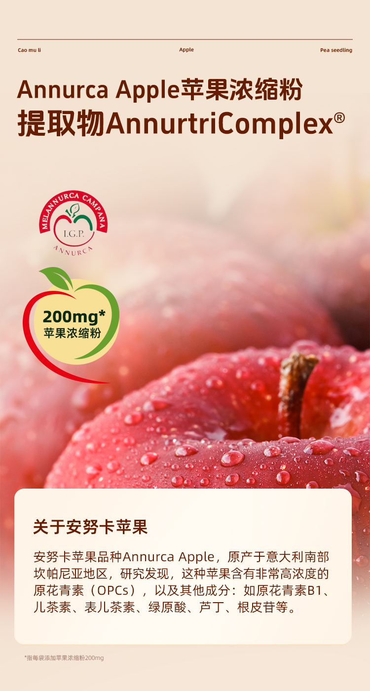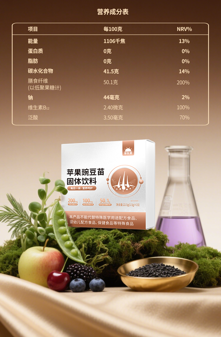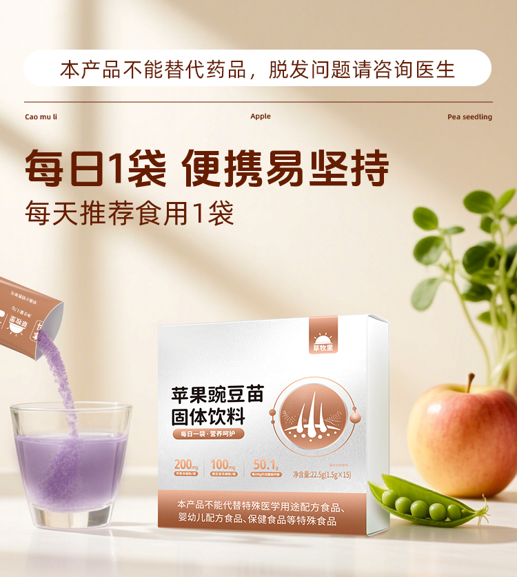 【自然植萃配方】草牧里 苹果豌豆苗固体饮料 1.5g*15条/盒 多重营养层层深补