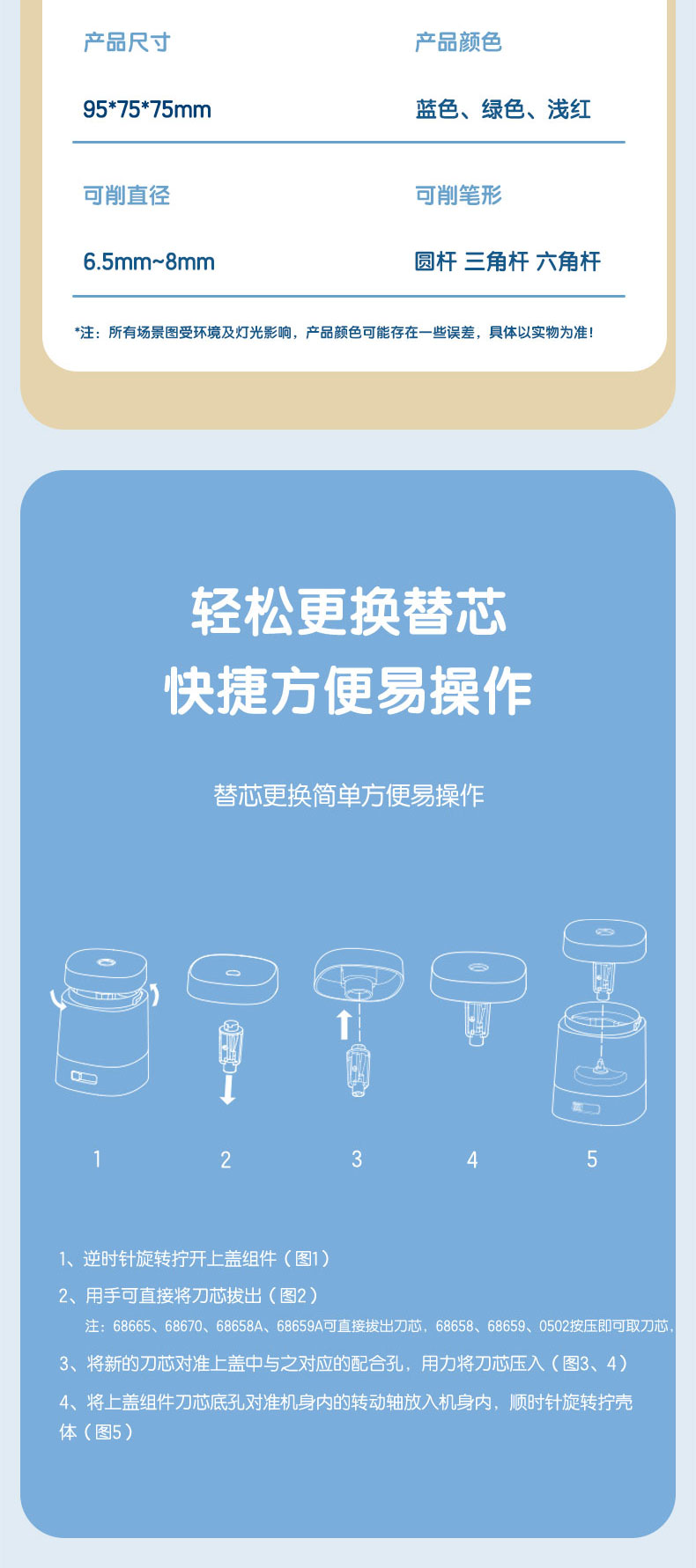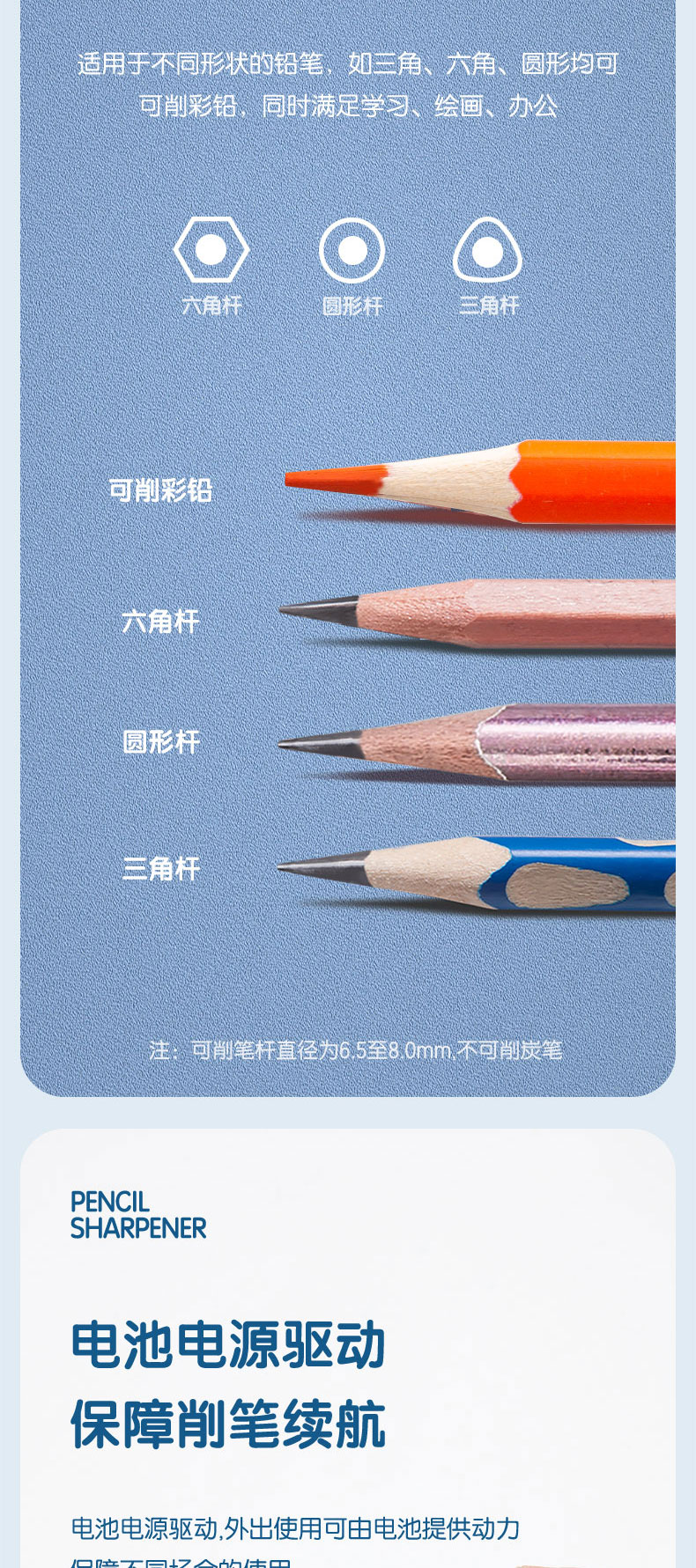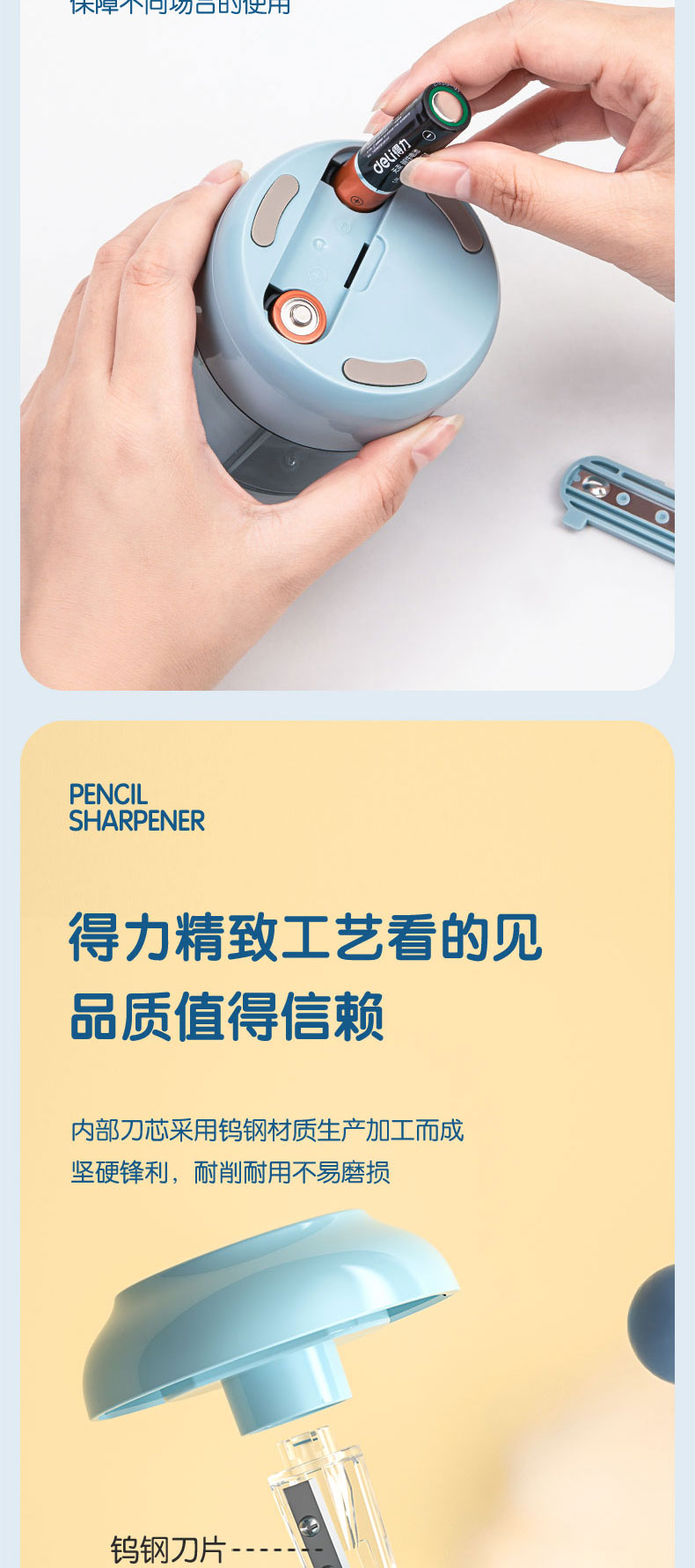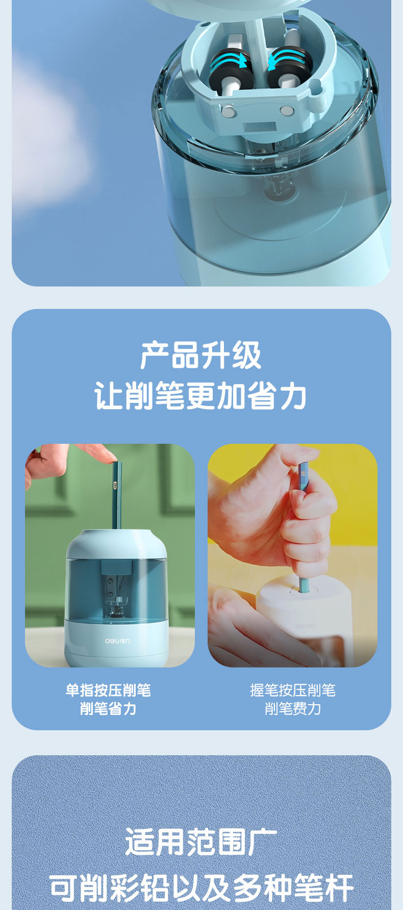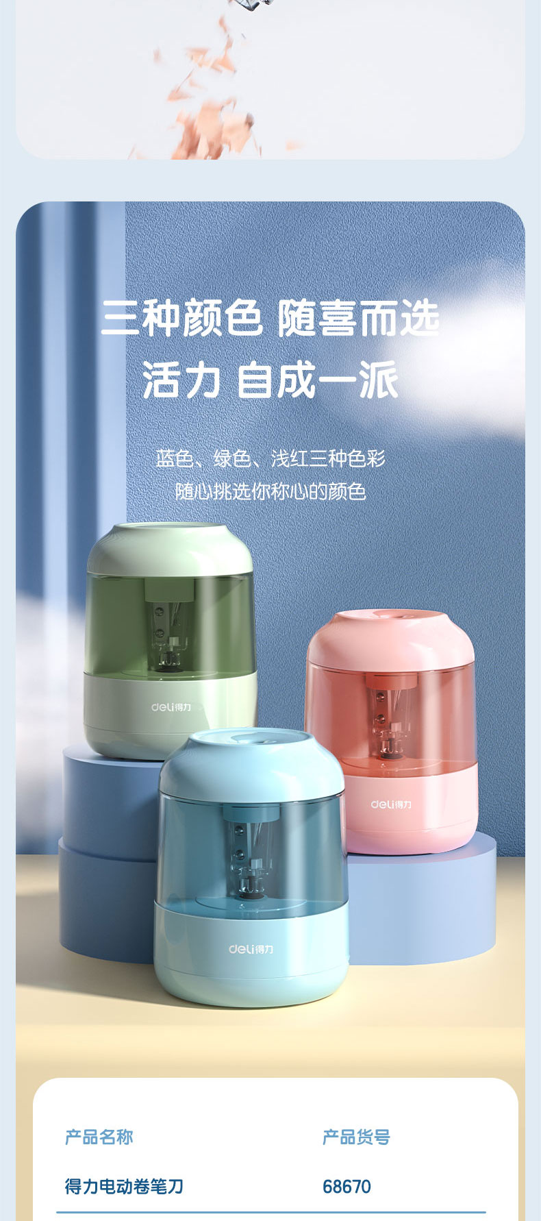 「三色可选」得力自动削笔器 电动转笔刀小学生用铅笔刀儿童可爱小型削笔机